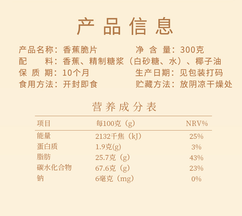 天生好果香蕉脆片300克【XPTX】