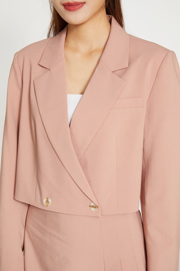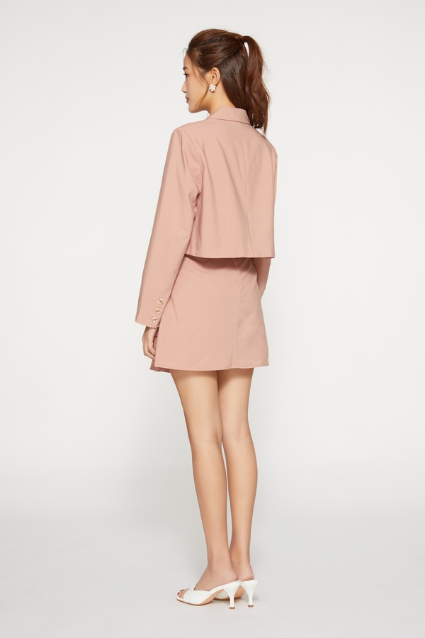 ONE MORE文墨 英伦风粉色短款西装裙套装 9525