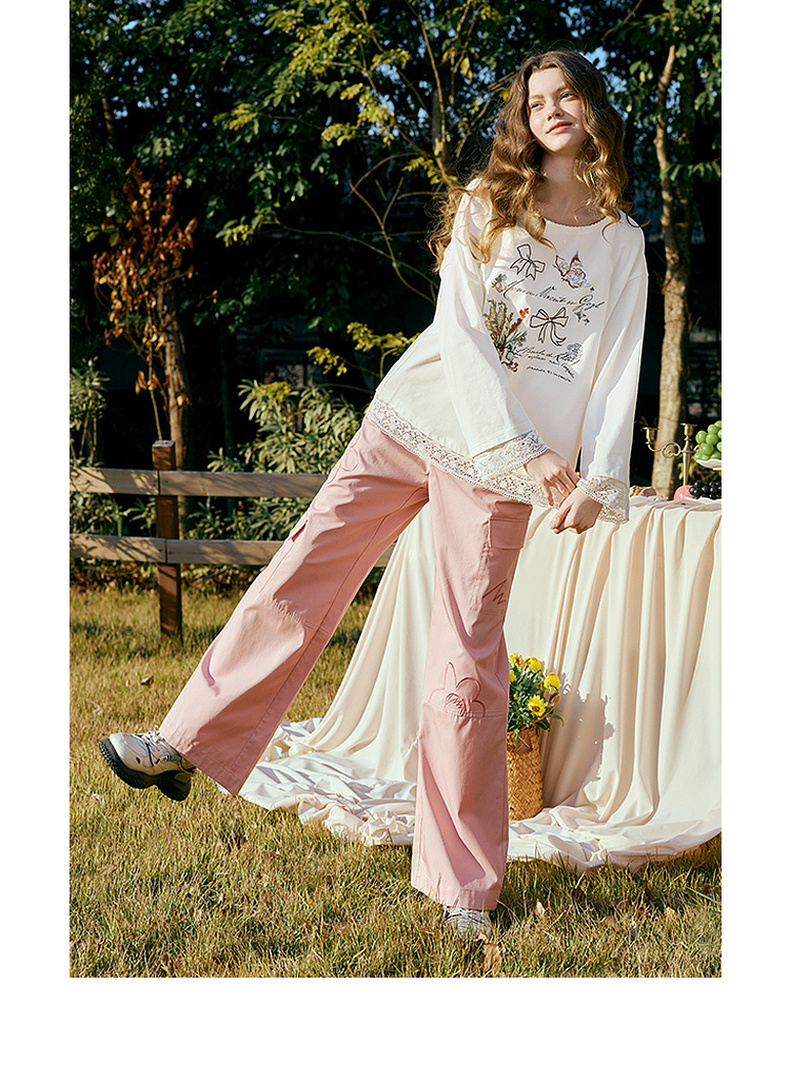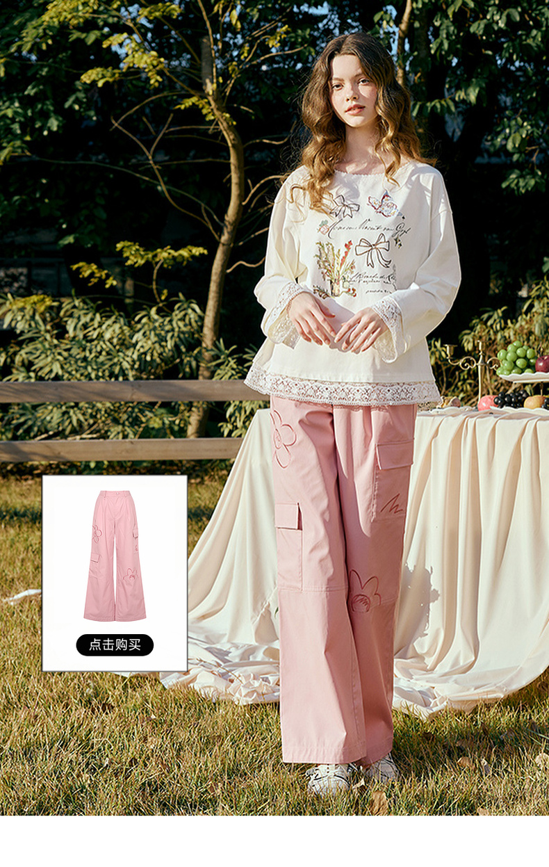 两三事梵高文艺 赭谣漫信 2025秋季新款刺绣纽扣装饰阔腿休闲裤女