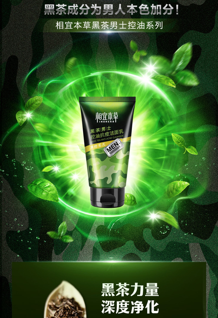 相宜本草黑茶男士控油抗痘洁面乳*100gJPY带授权招加盟代理