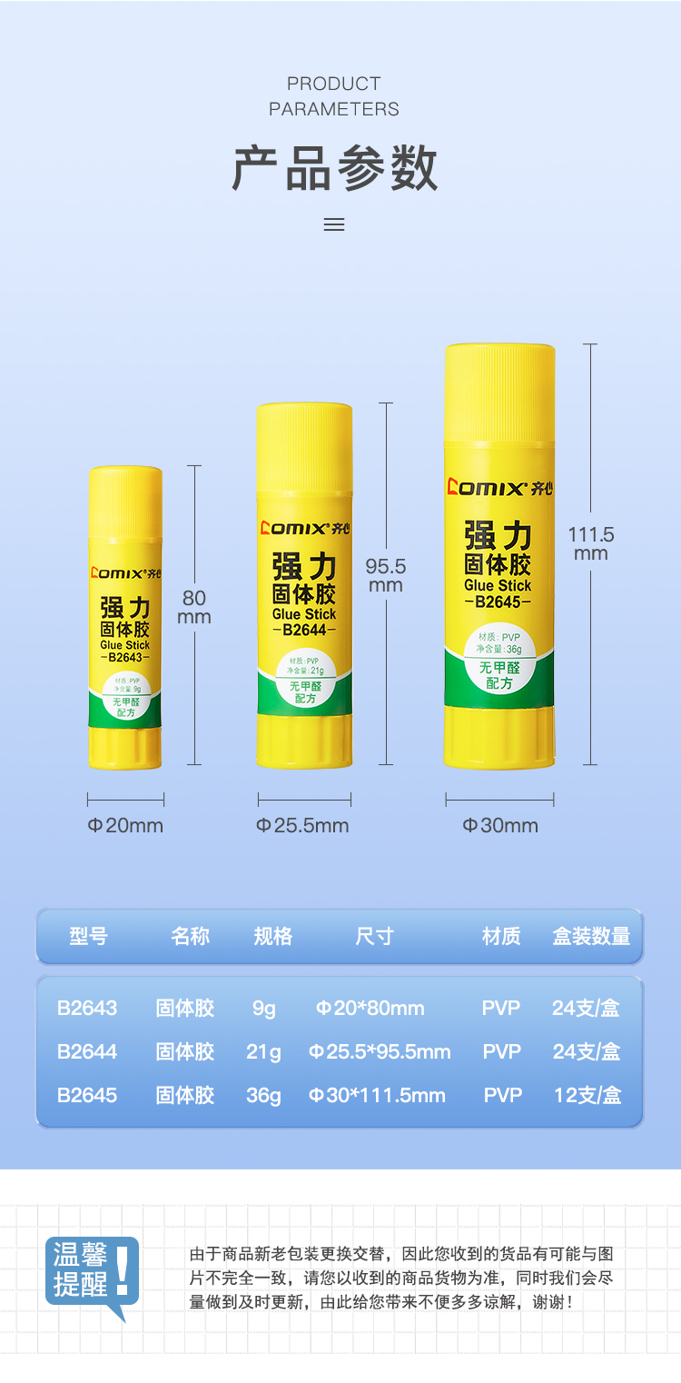齐心固体胶B2644白 强力PVP 21克