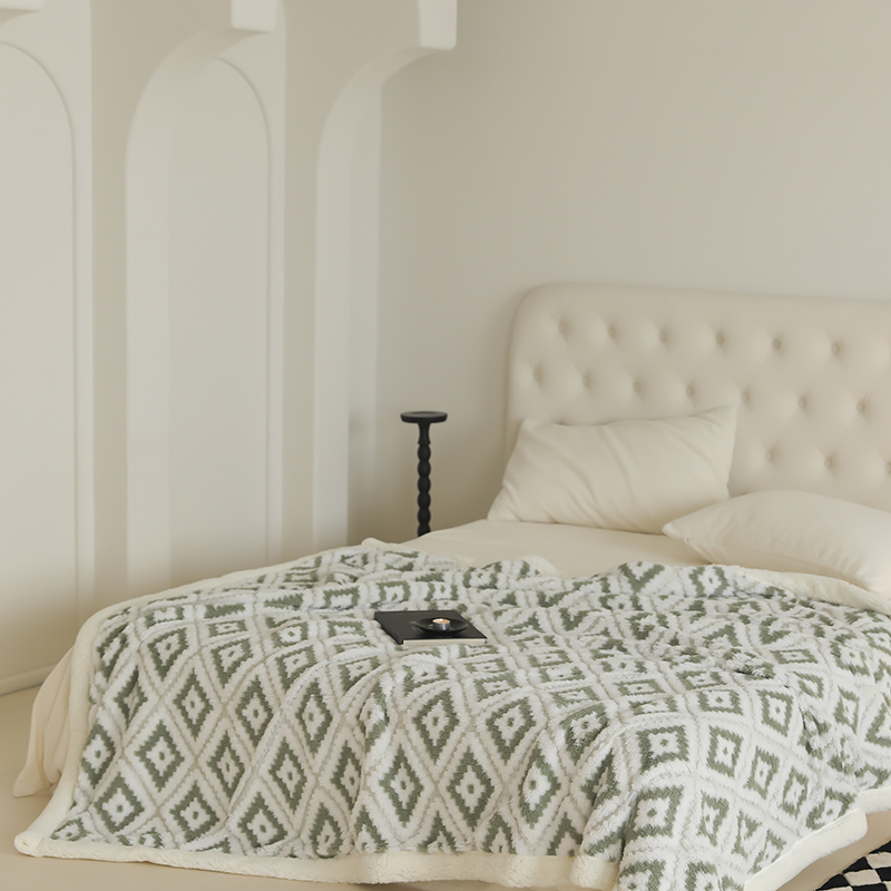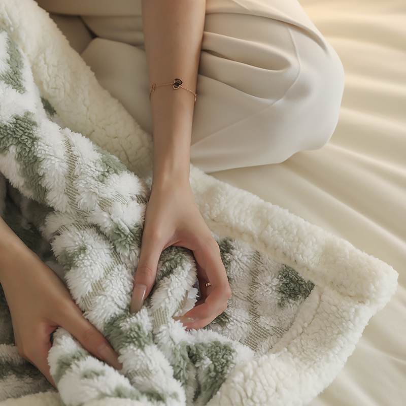 自然醒阳离子提花松林系列羊羔绒毯子塔芙绒亲肤保暖卧室毛毯盖毯柔软沙发毯MT