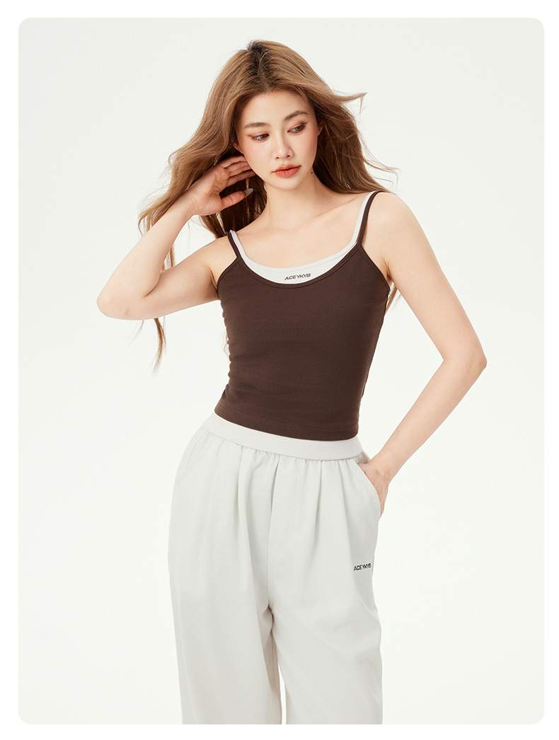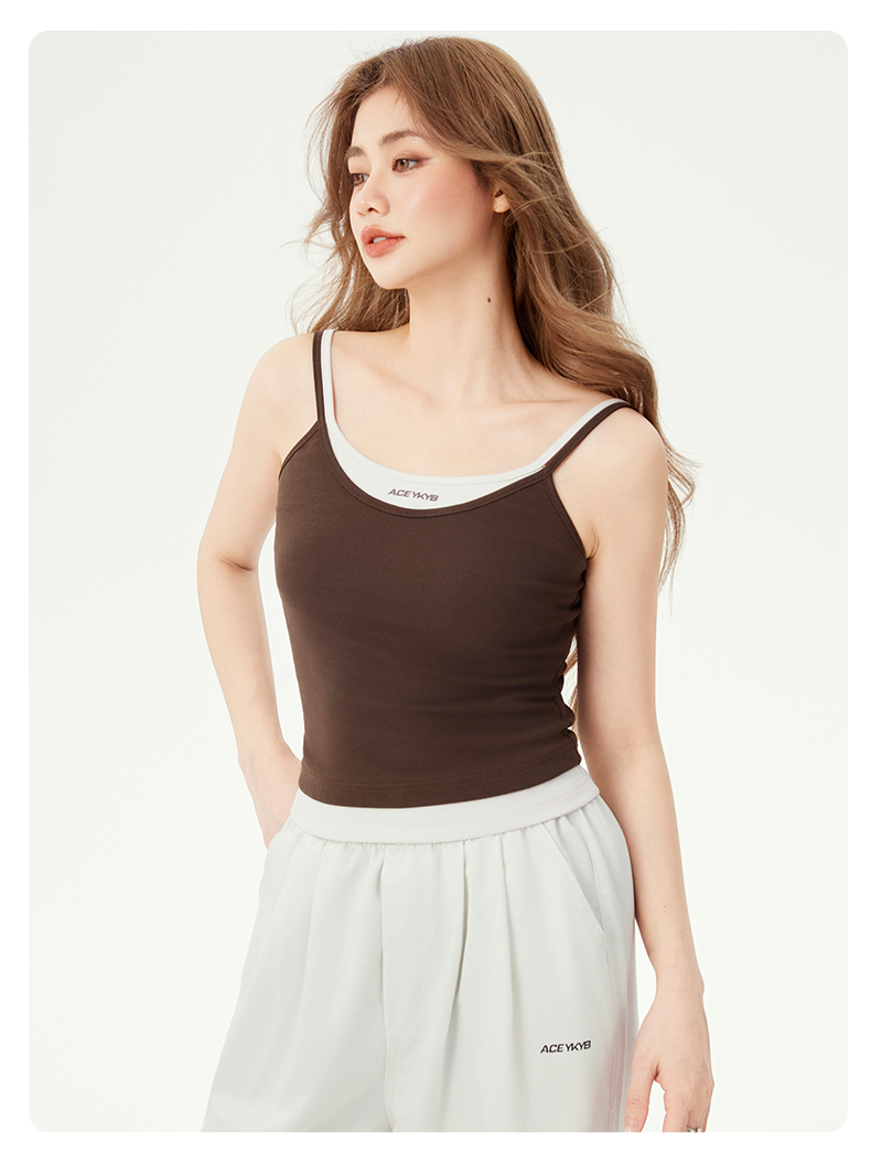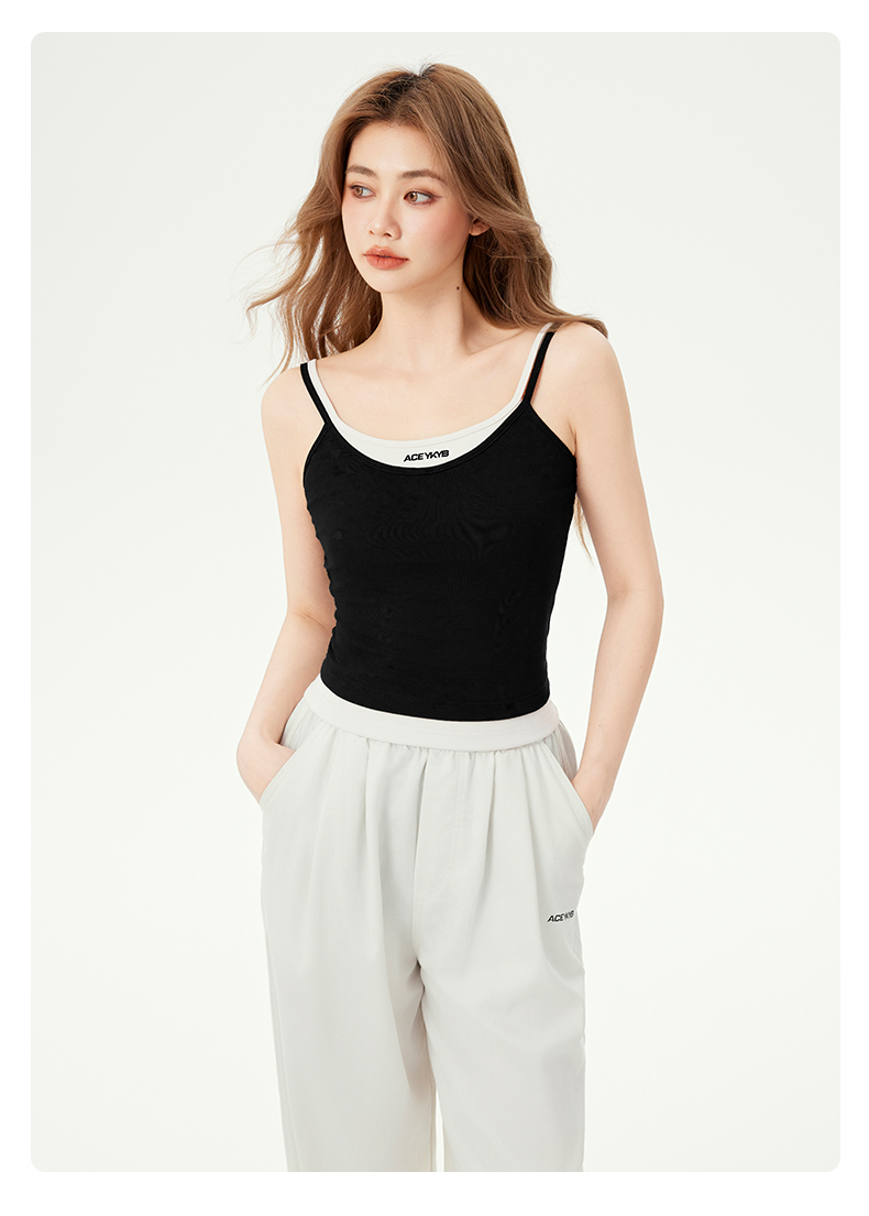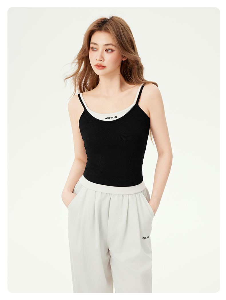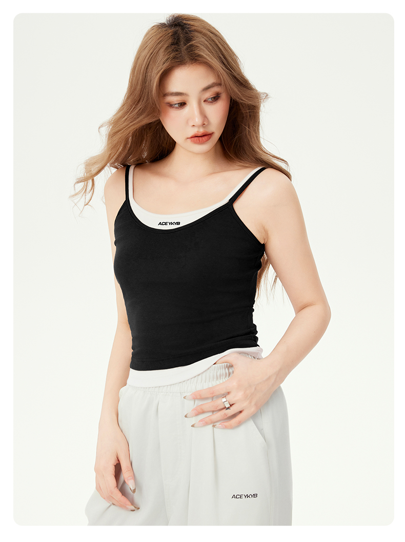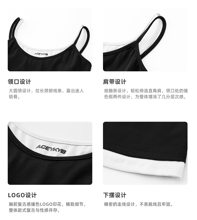 YKYB黄子韬吊带背心简约显瘦舒适弹力肤修身假两件上衣Y52FBX039