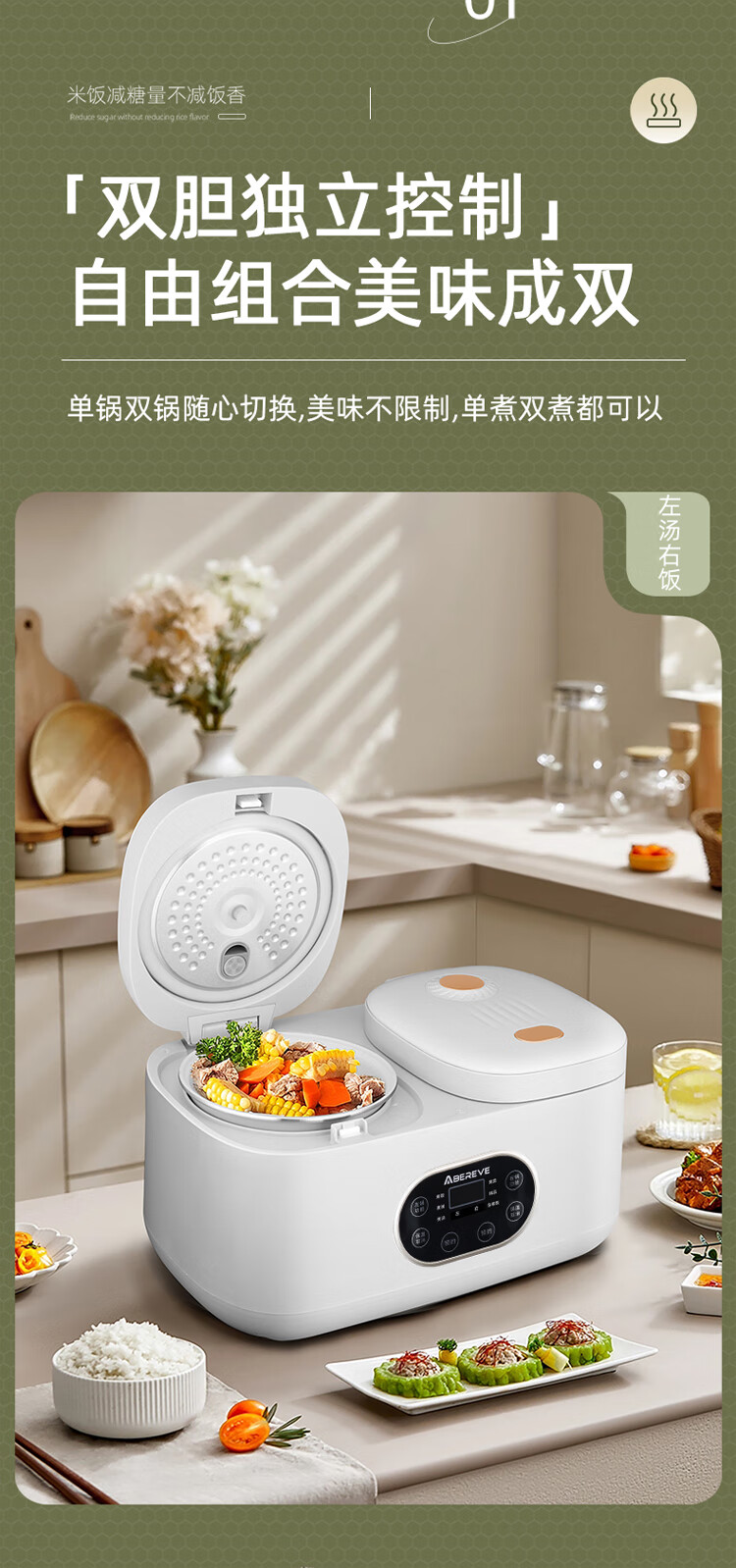 【小家电】Abereve艾贝丽双胆智能低糖电饭煲ABL-DFB409 HF