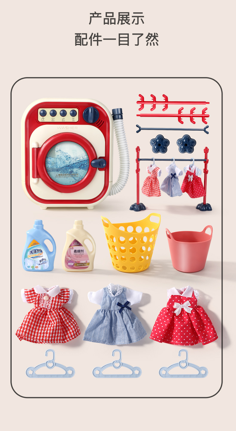 儿童洗衣机玩具套装仿真可加水迷你女孩子3岁+生日礼物小演员