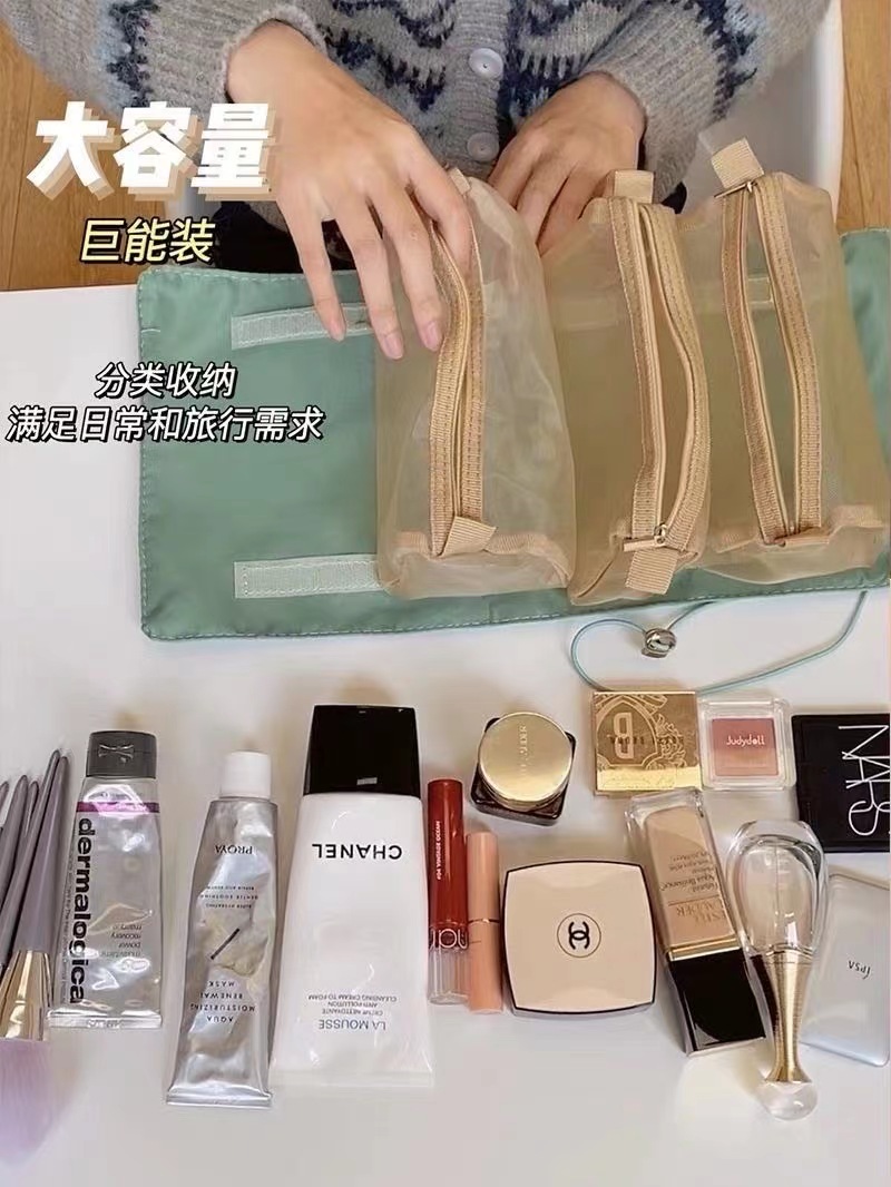 能装好多护肤品化妆品!可以拆出来可以当笔袋~还可以挂墙上!