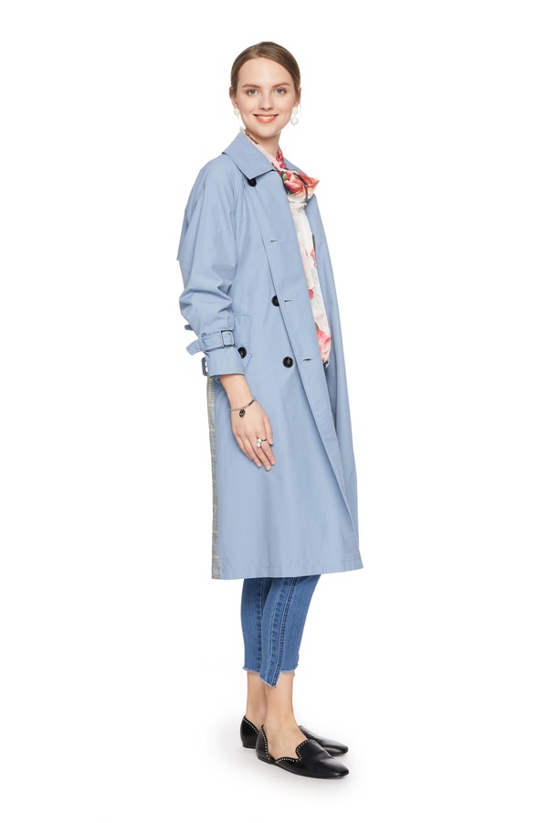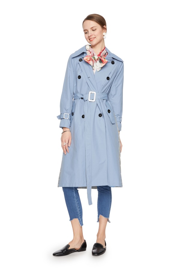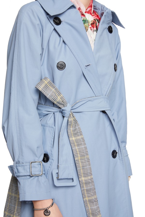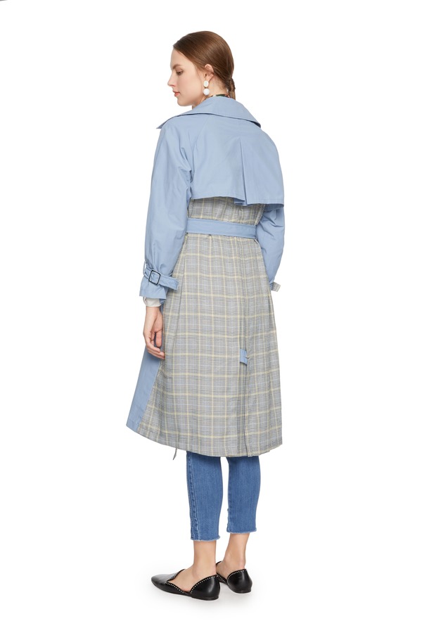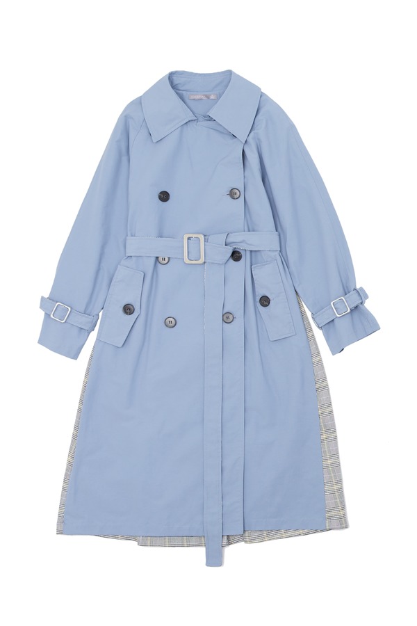 OCTAVIA 格纹拼接双排扣束腰风衣 6180