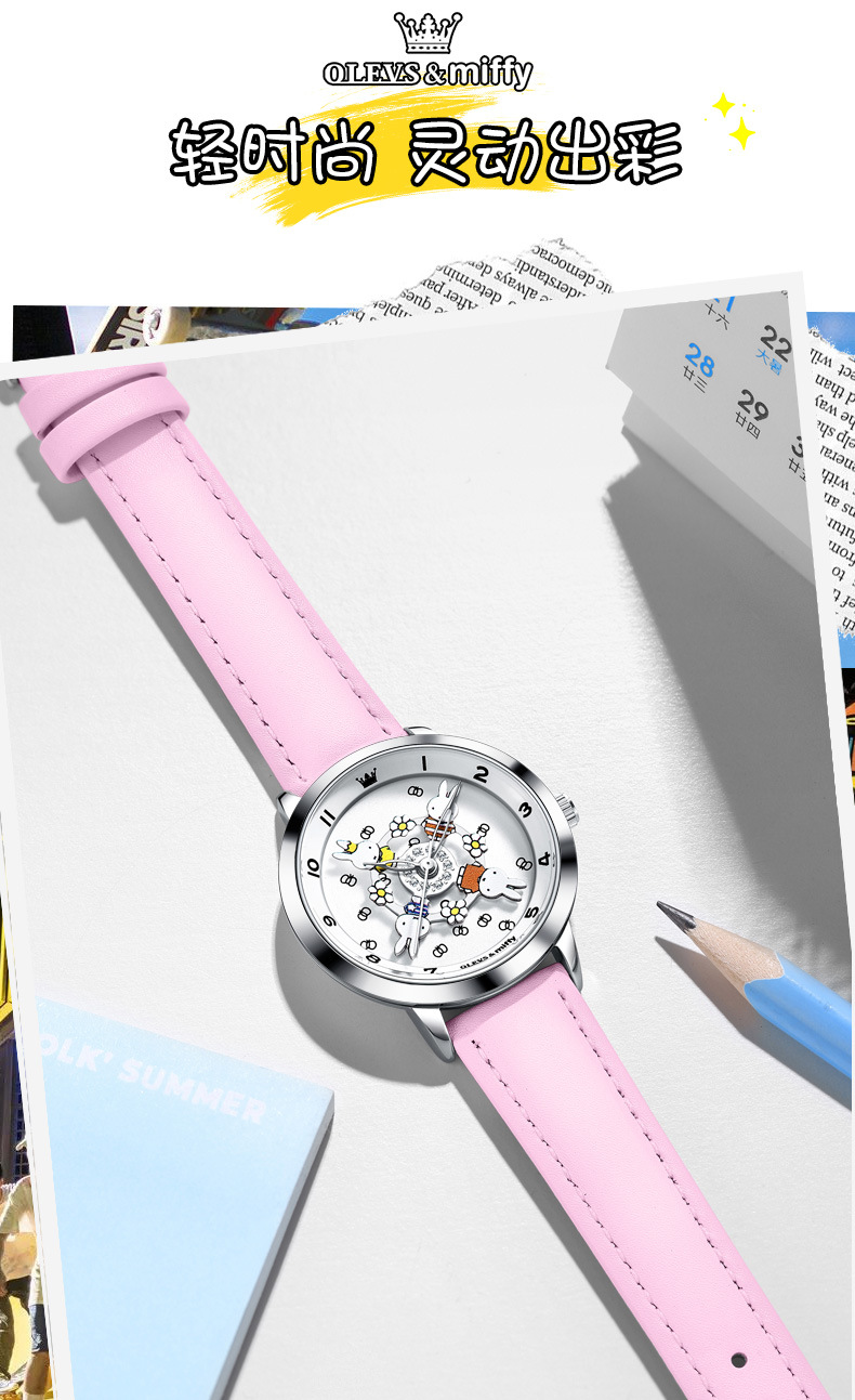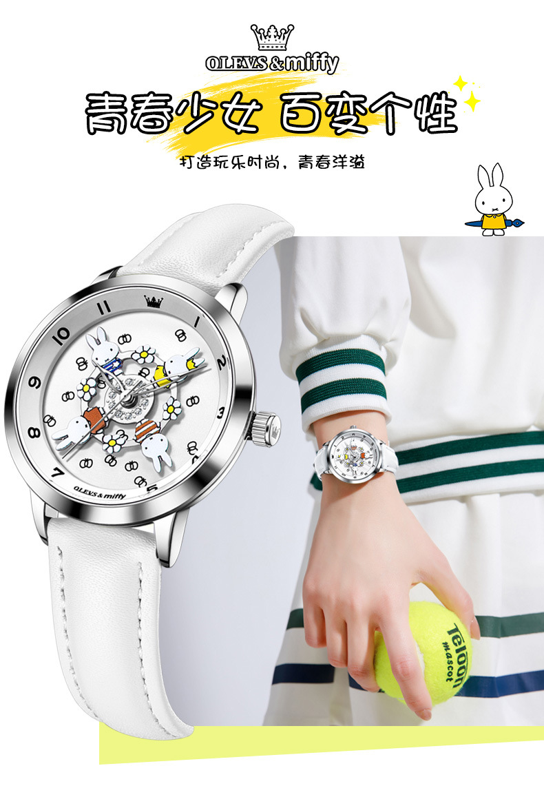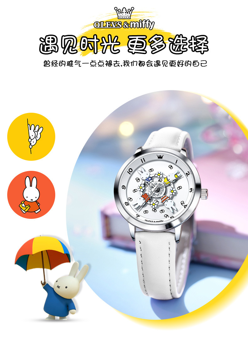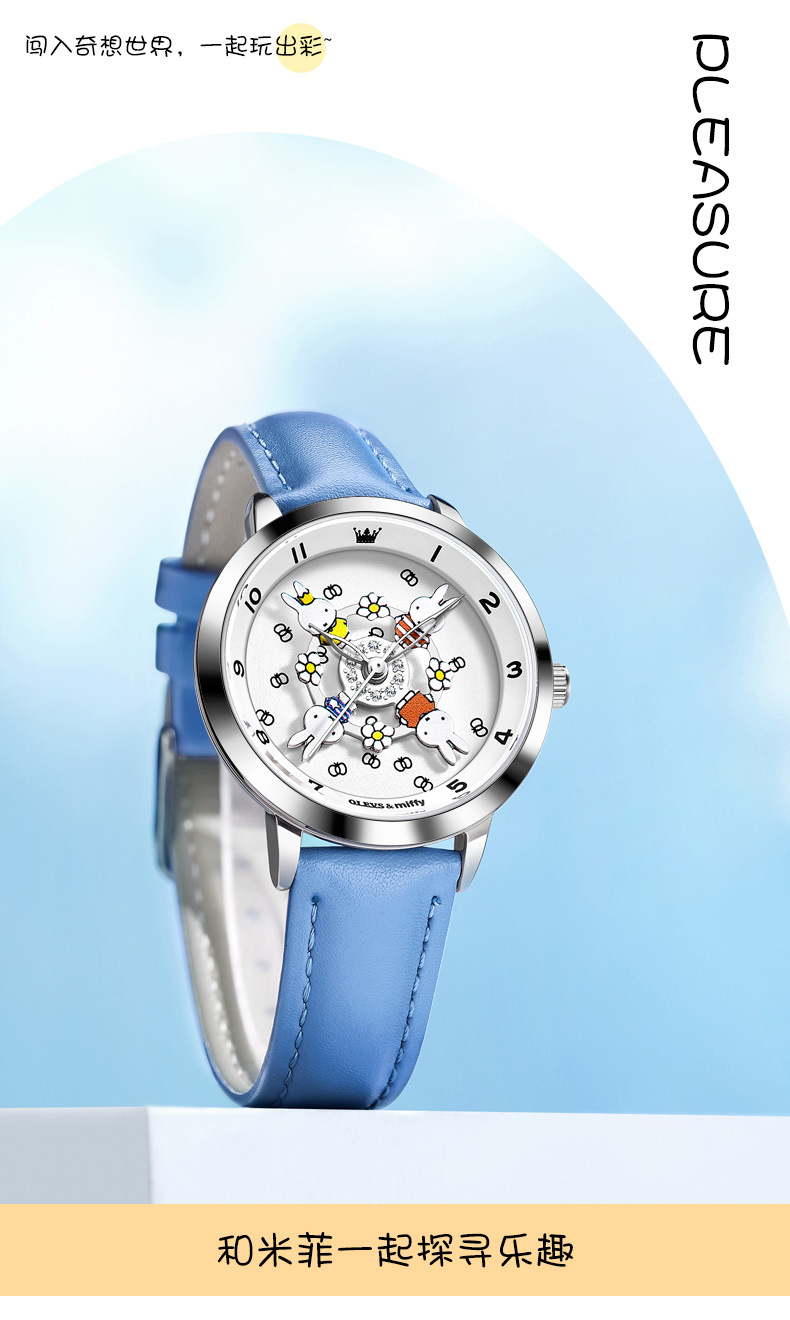 「礼盒装!米菲联名款」新款欧利时米菲联名款可爱卡通旋转木马女孩手表防水石英学生女表时尚饰品