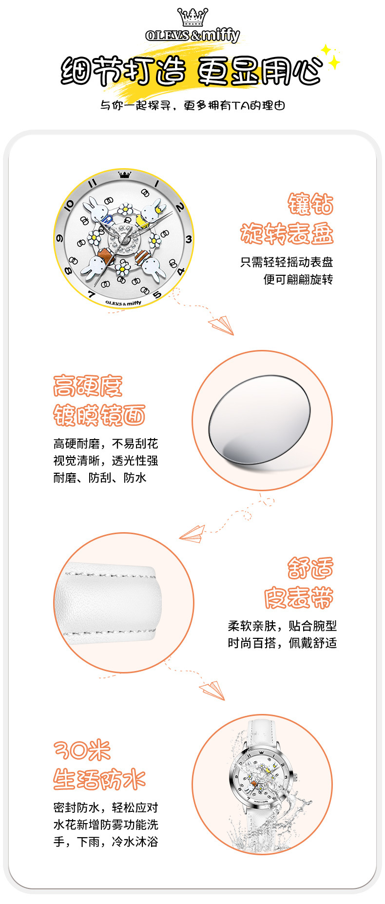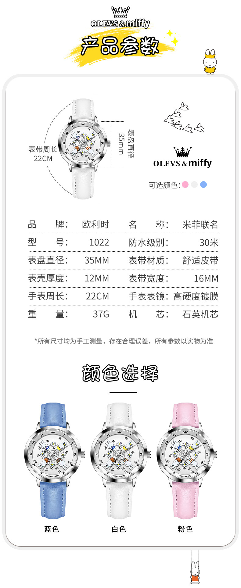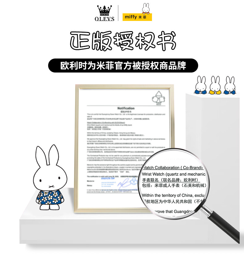 「礼盒装!米菲联名款」新款欧利时米菲联名款可爱卡通旋转木马女孩手表防水石英学生女表时尚饰品
