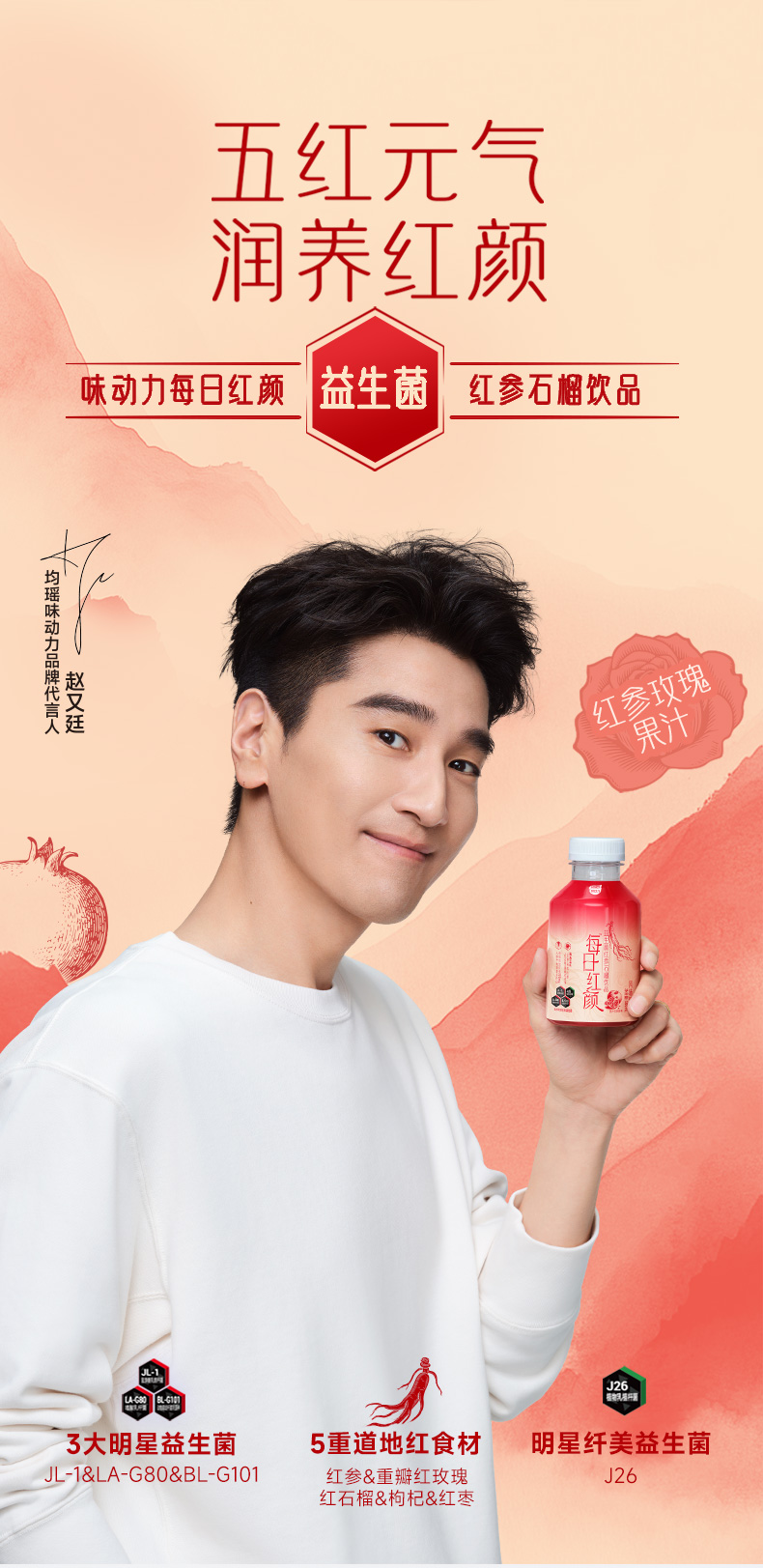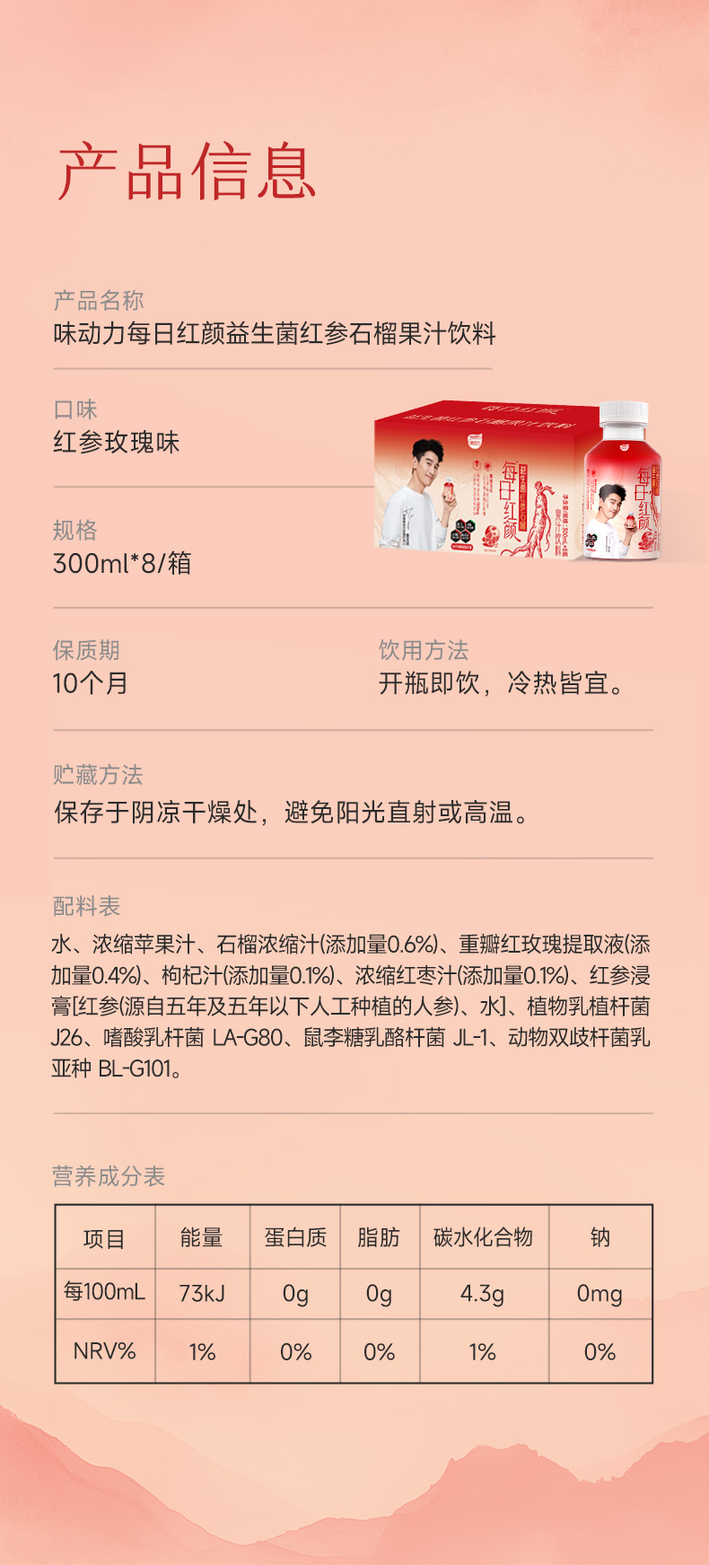 【赵又廷同款】味动力每日红颜益生菌红参石榴饮品300mL*8瓶