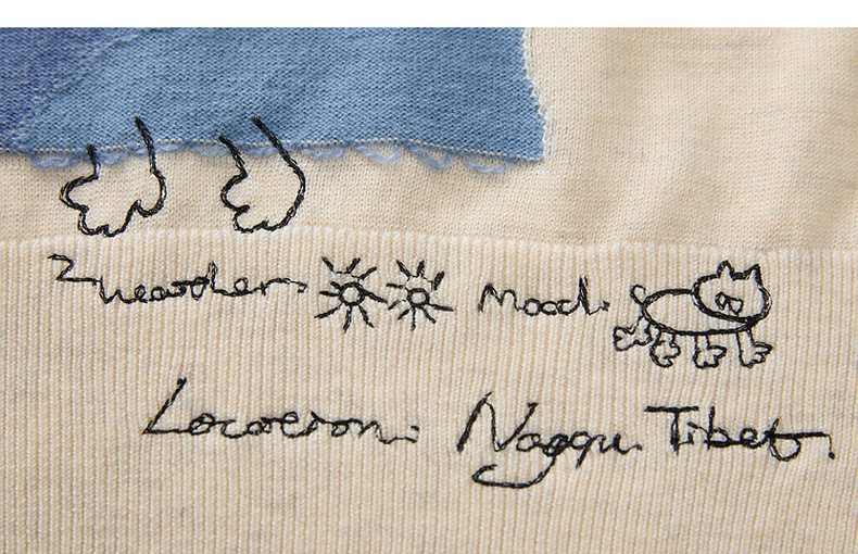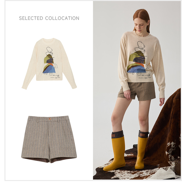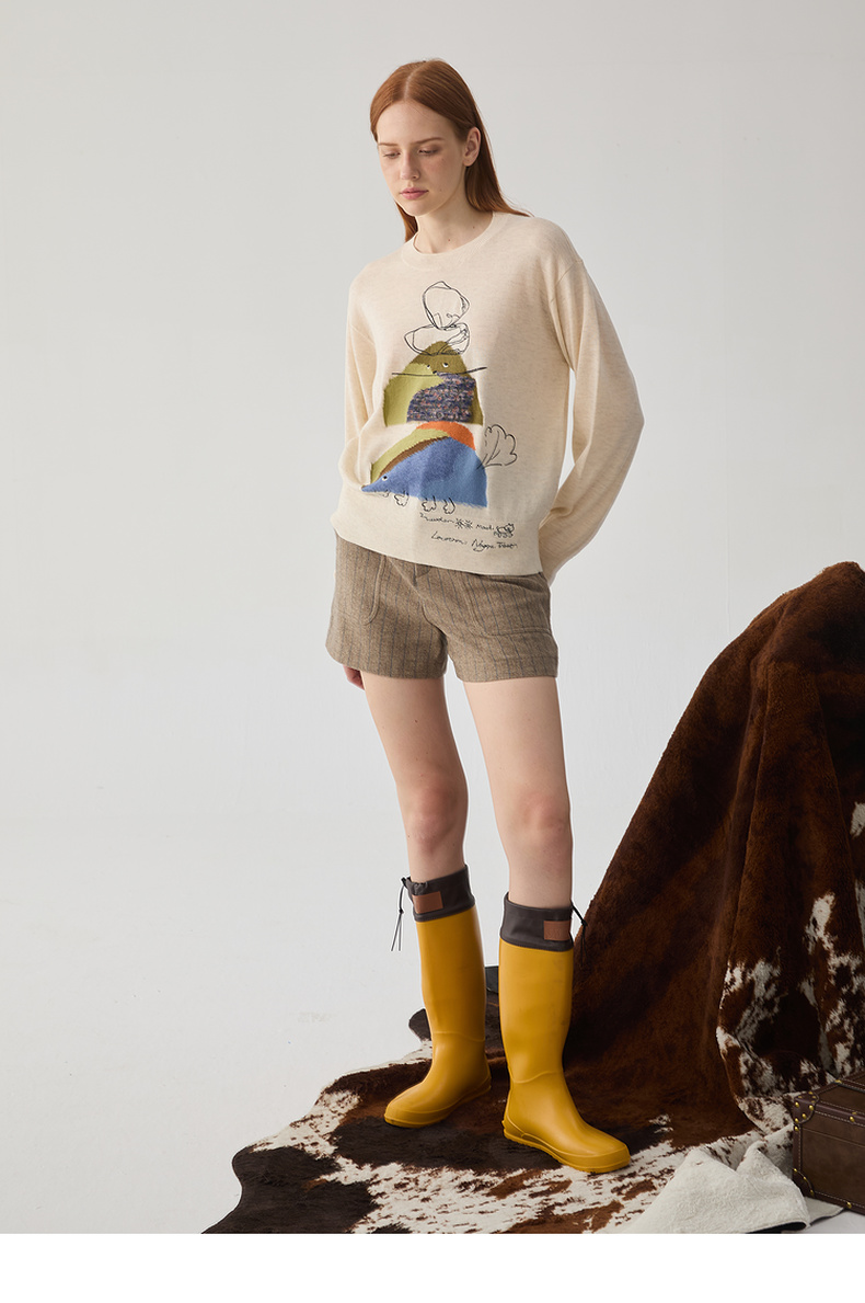 谜底圆领套头毛衣女2024冬款学院风趣味绣花宽松针织衫244MZ1897