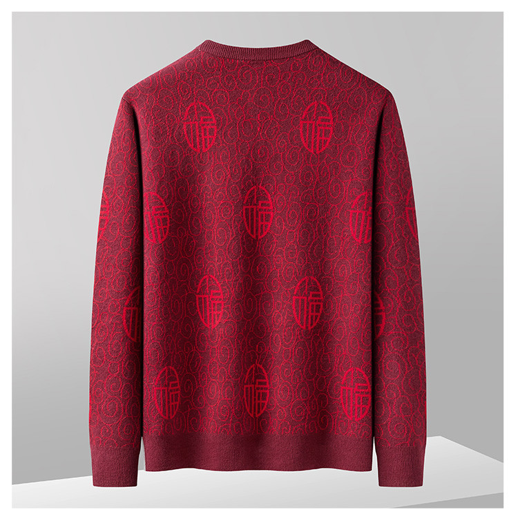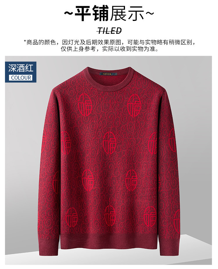 罗蒙男士秋冬复古新年毛衣男加厚保暖时尚百搭毛衫男士针织衫男士毛衣