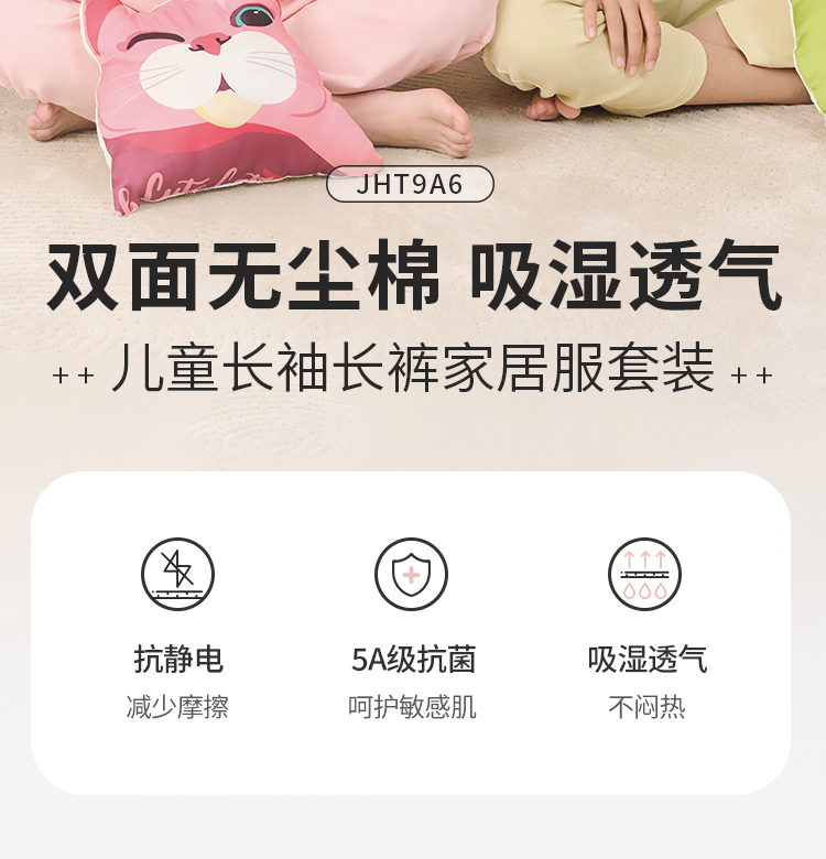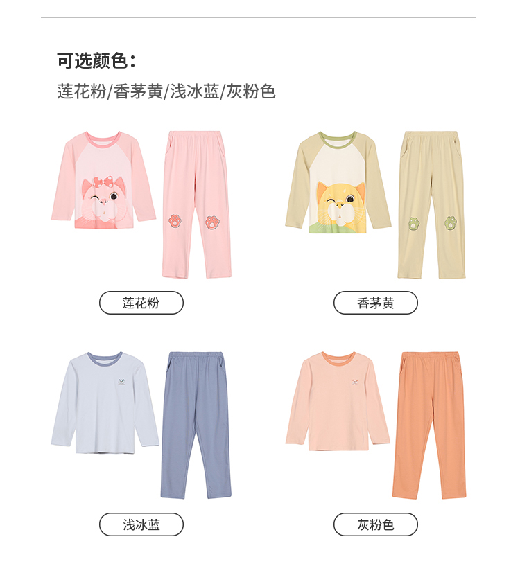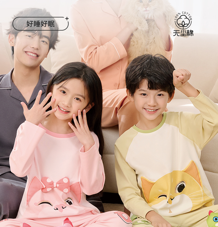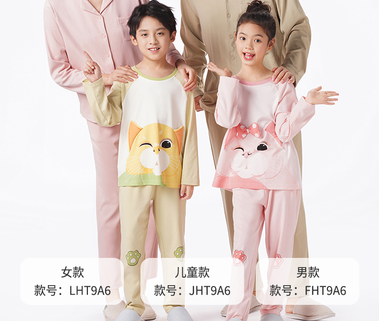 都市丽人眯雅佳睡衣亲情蜜语长袖双面无尘棉薄童装棉质长袖套装JHT9A6