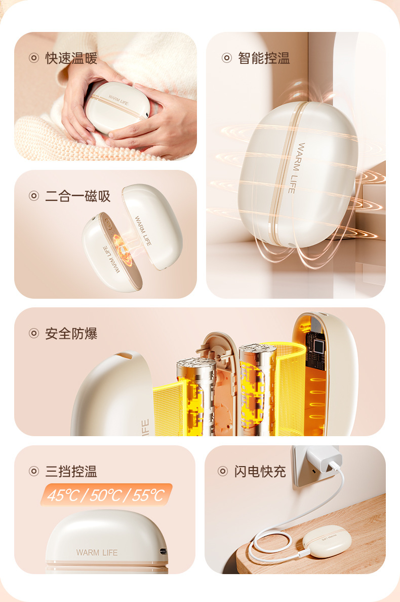 「分体式磁吸暖宝!快速温暖」新款暖手宝磁吸电暖宝二合一户外便携取暖居家日用充电暖宝宝冬季礼品