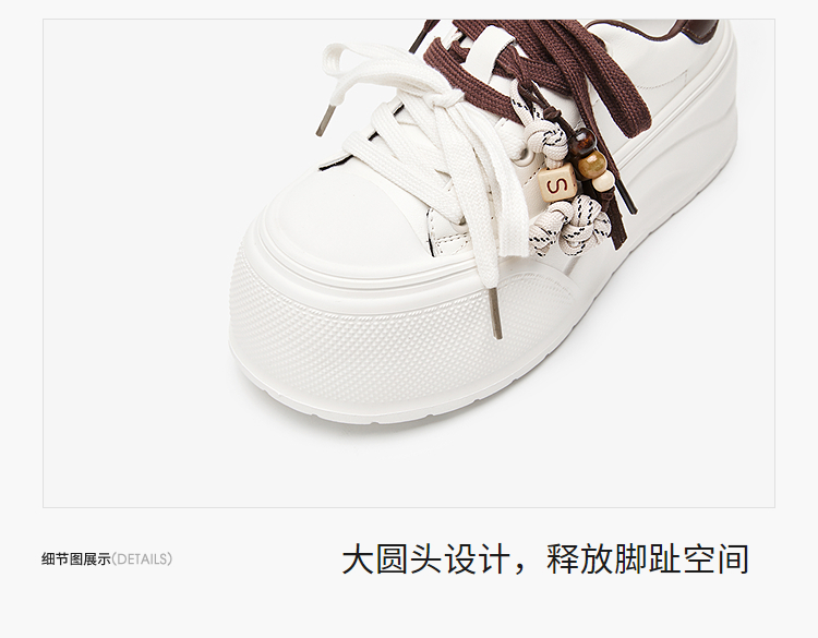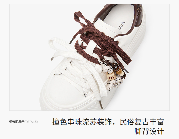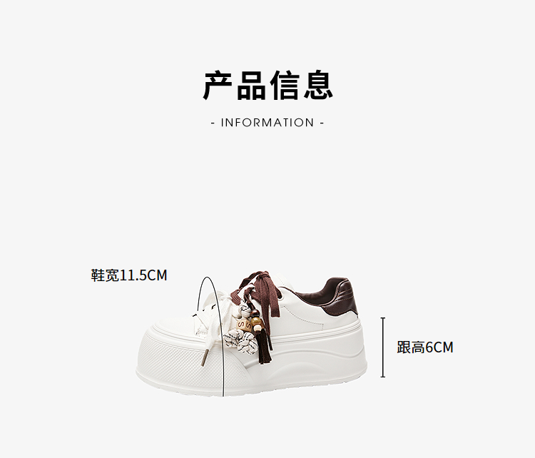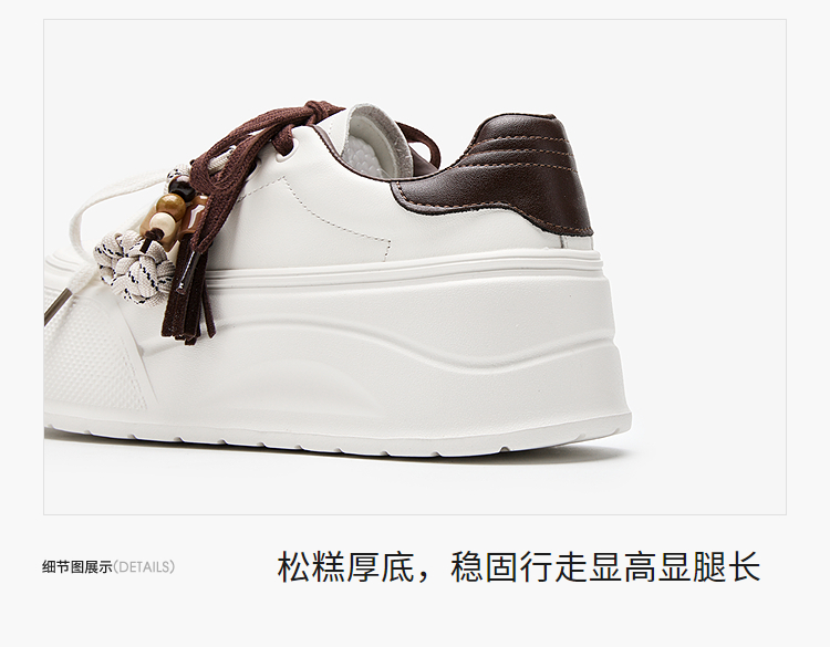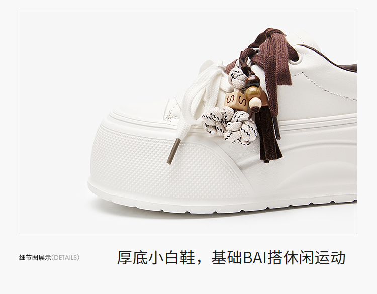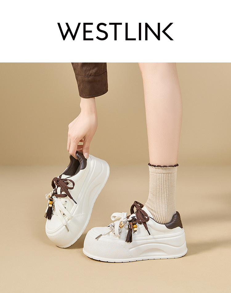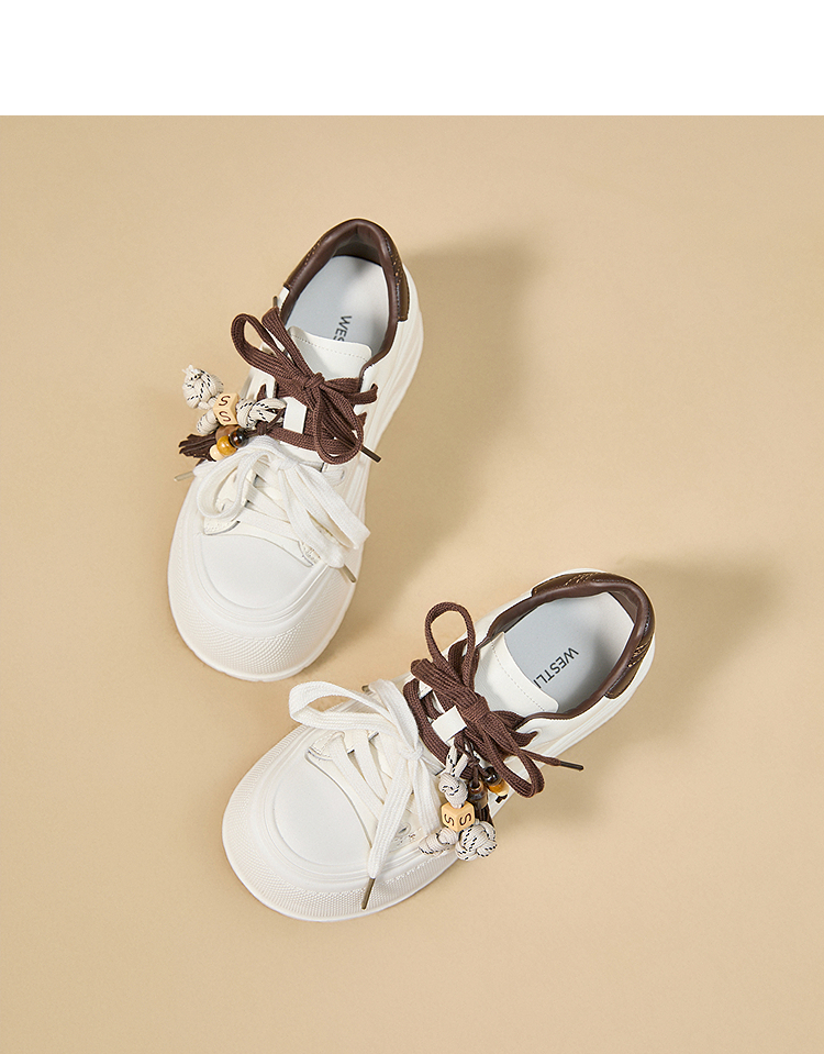 西遇松糕小白鞋女新款秋季复古串珠流苏系带休闲鞋厚底板鞋V1857057