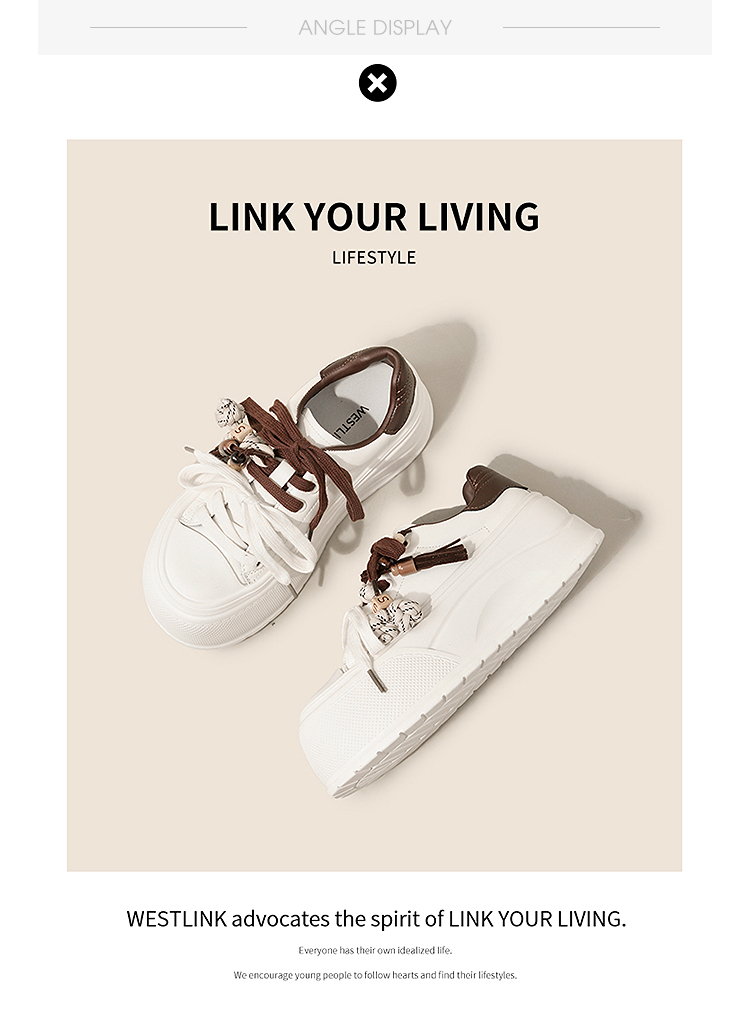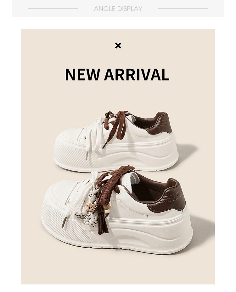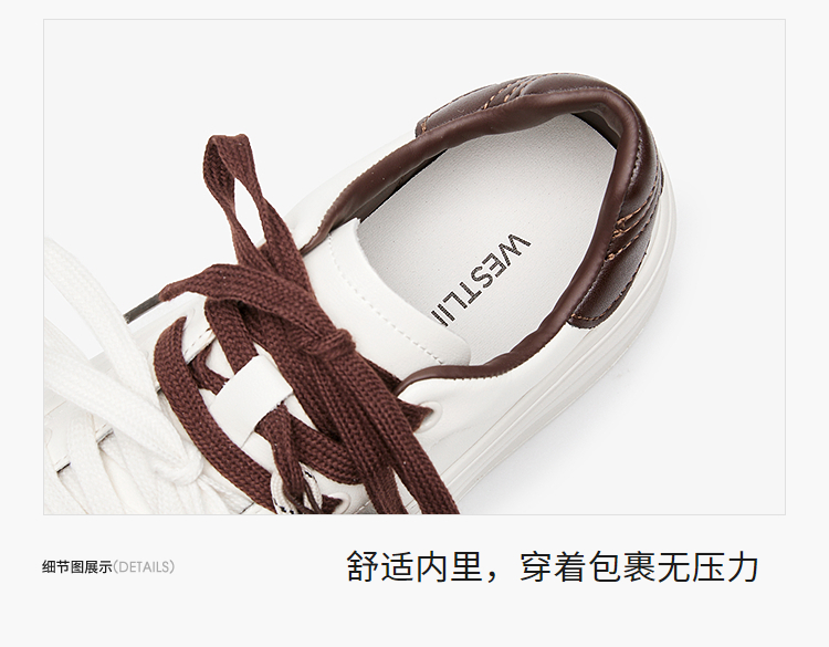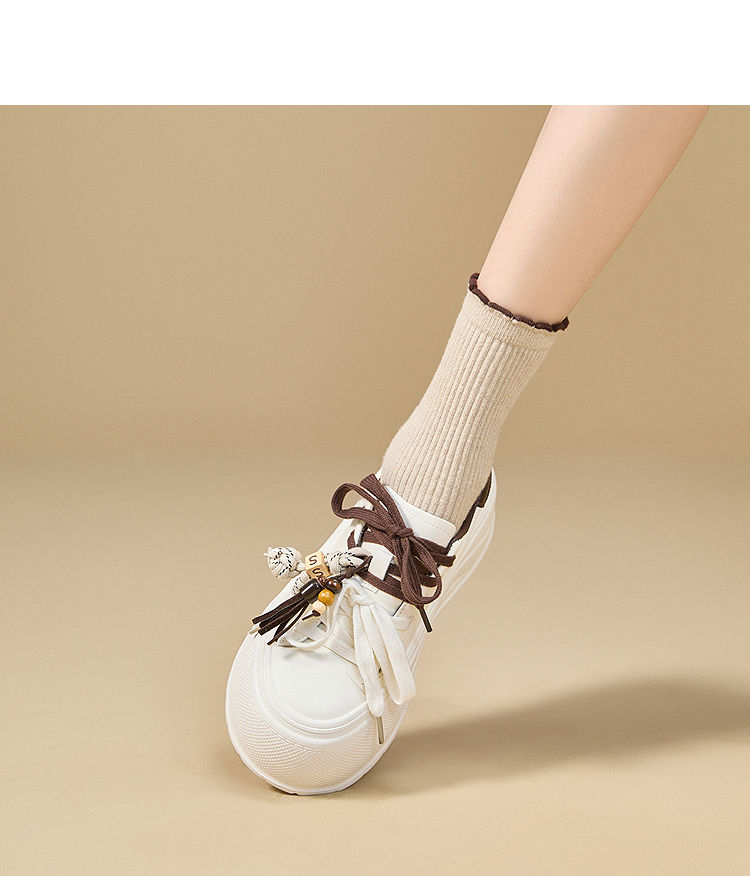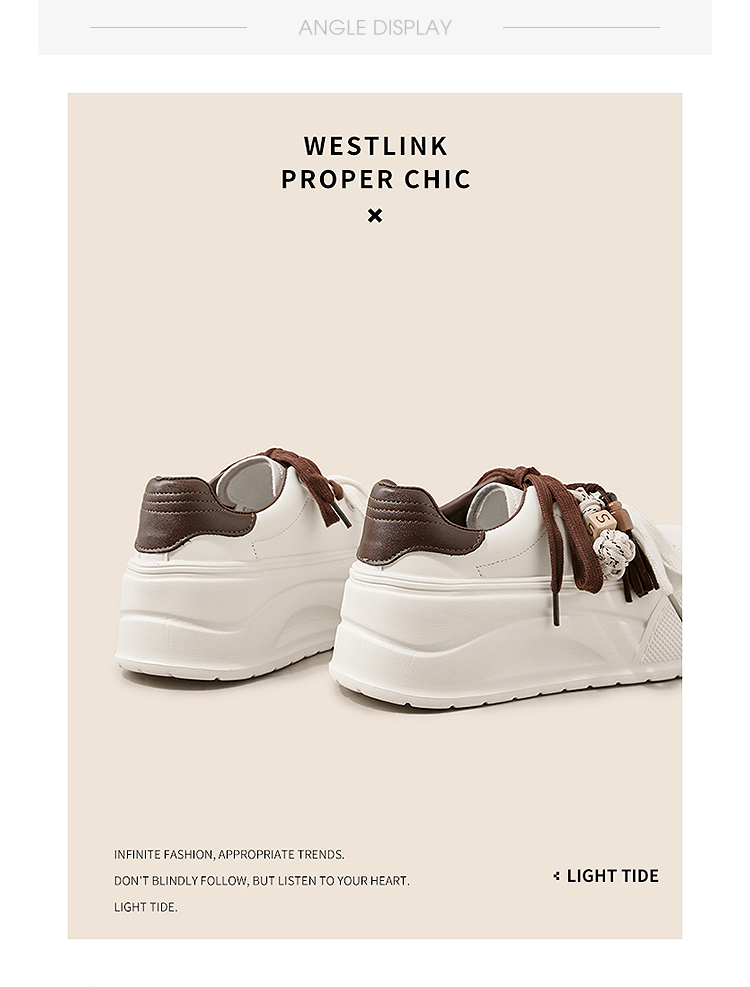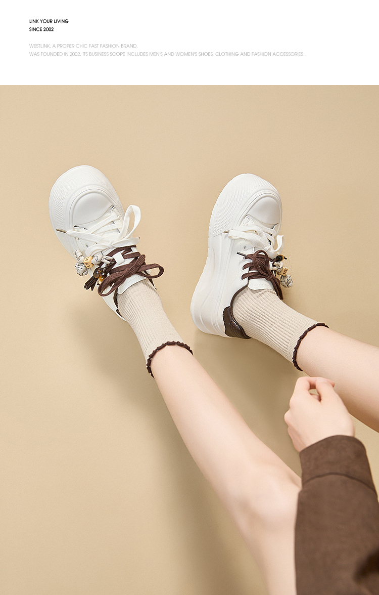 西遇松糕小白鞋女新款秋季复古串珠流苏系带休闲鞋厚底板鞋V1857057