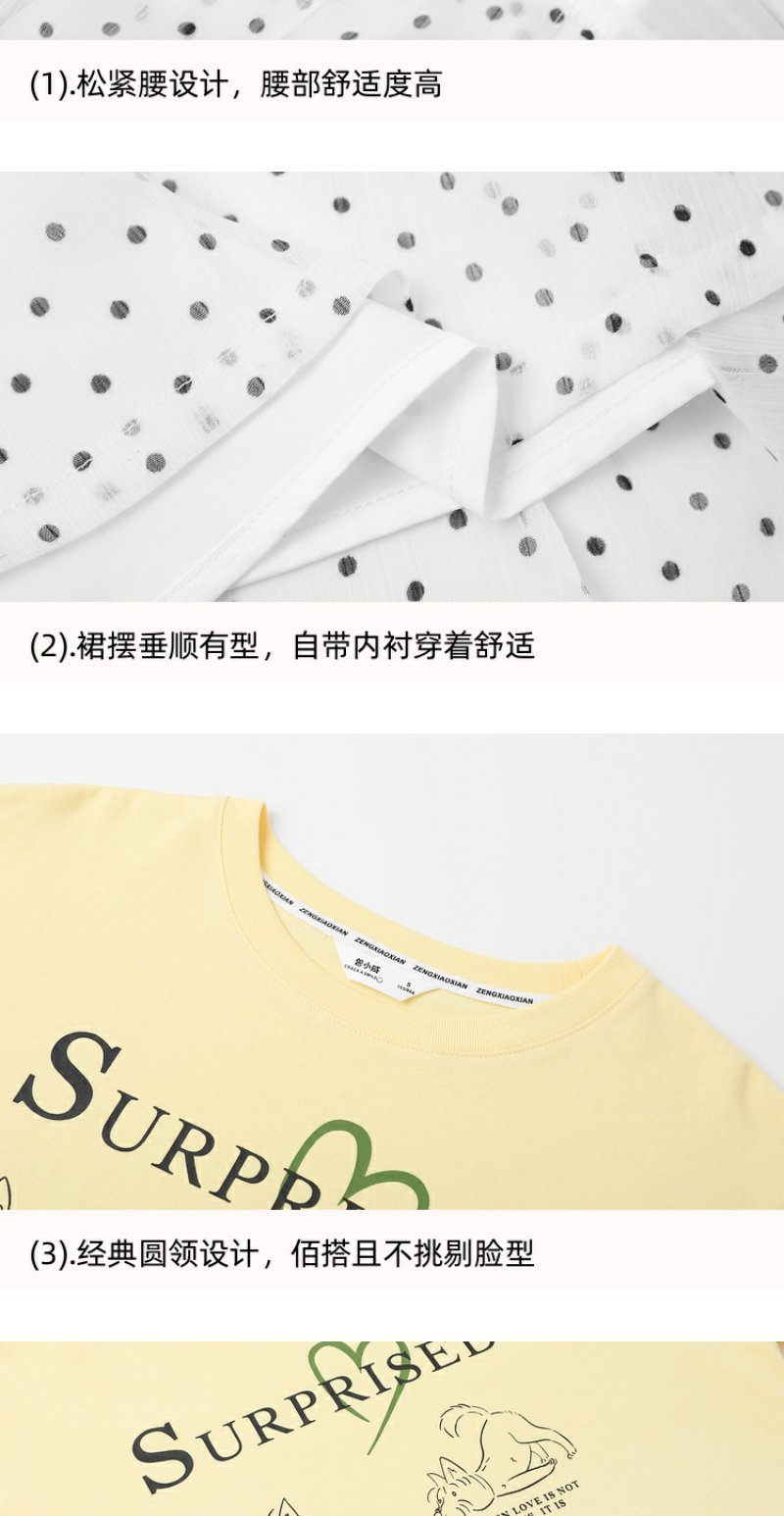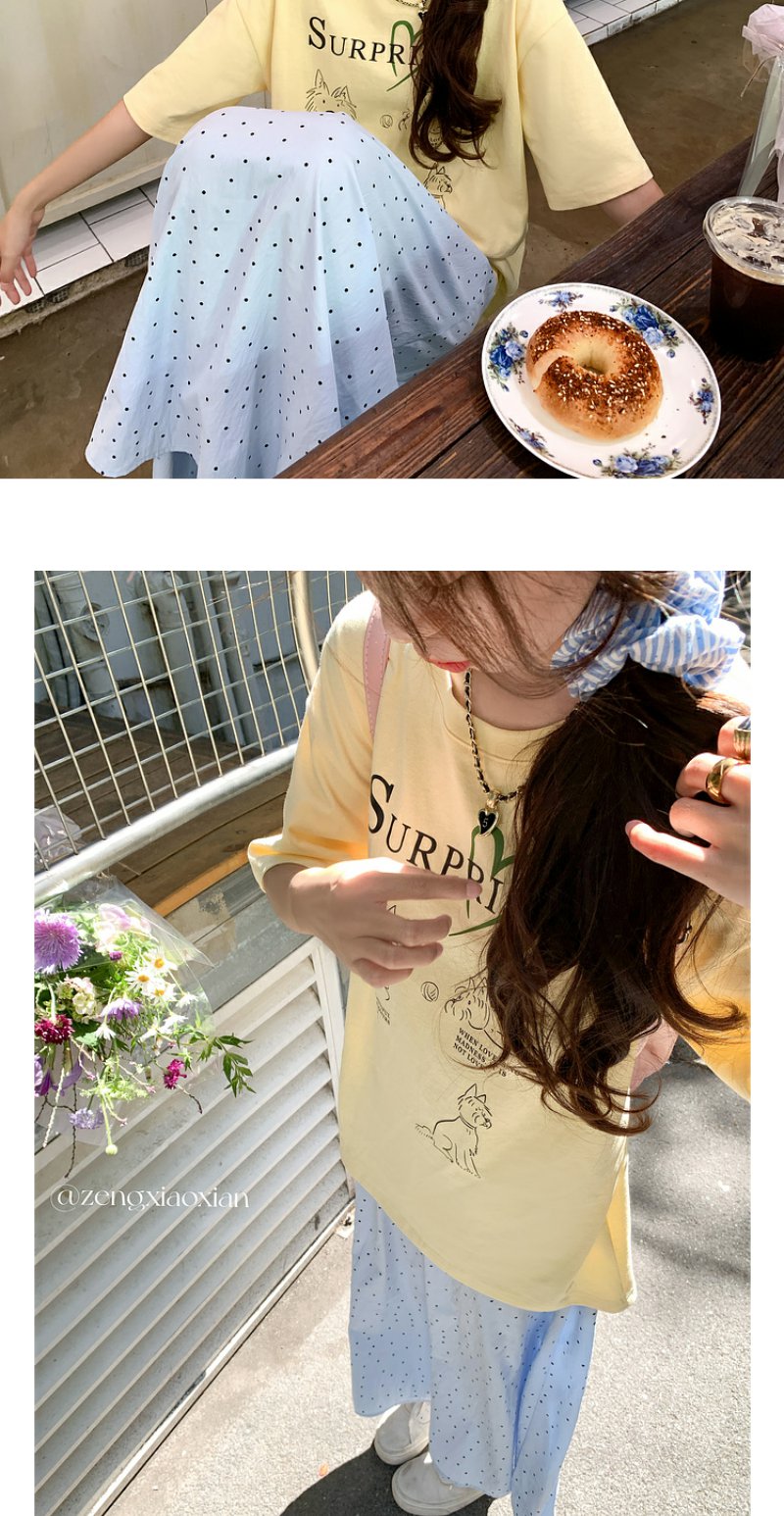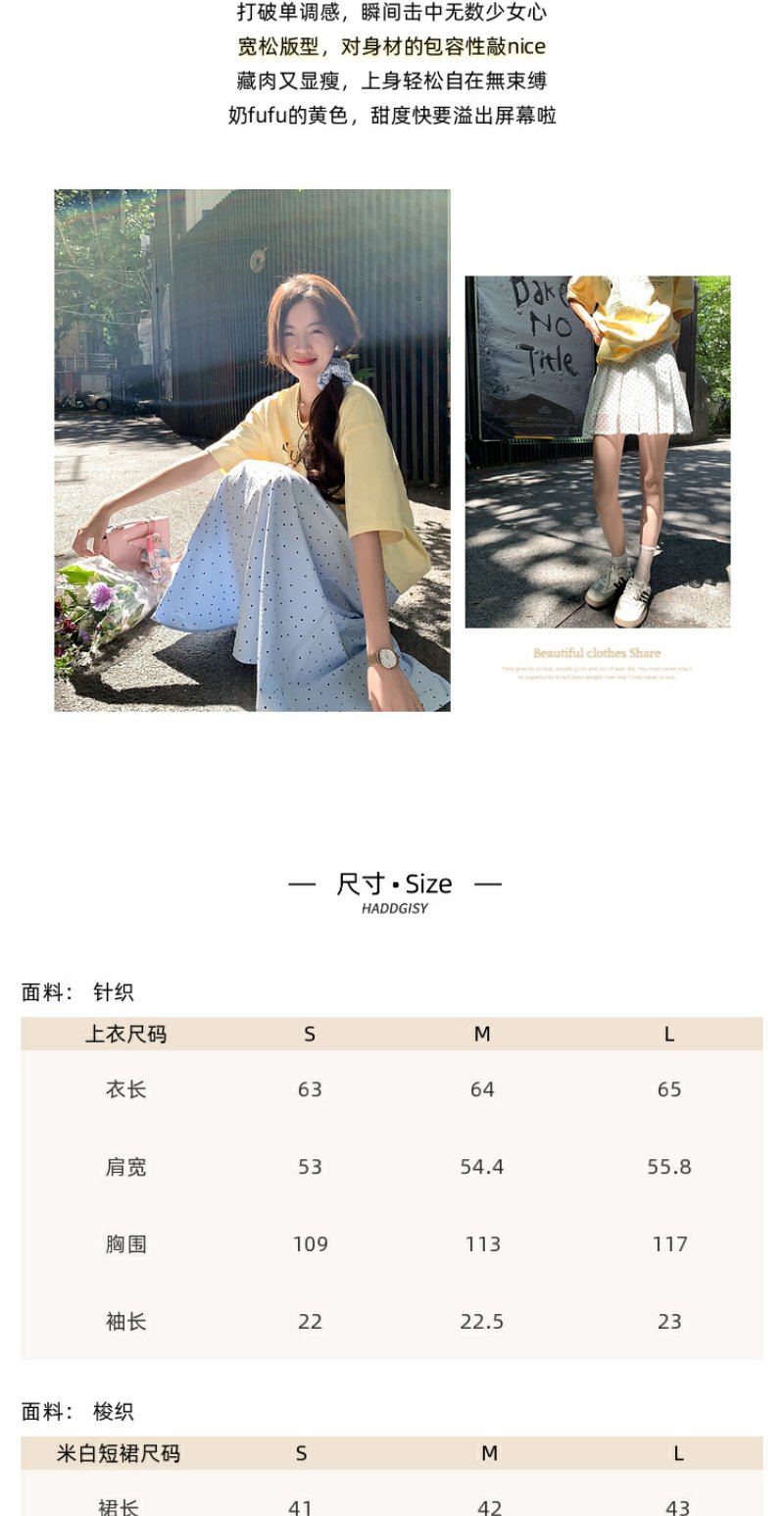 <曾小咸推荐>【甜甜软糖】黄色印花字母短袖T恤+半裙