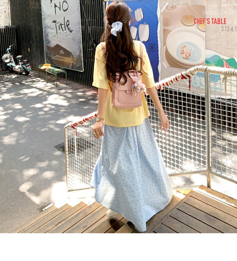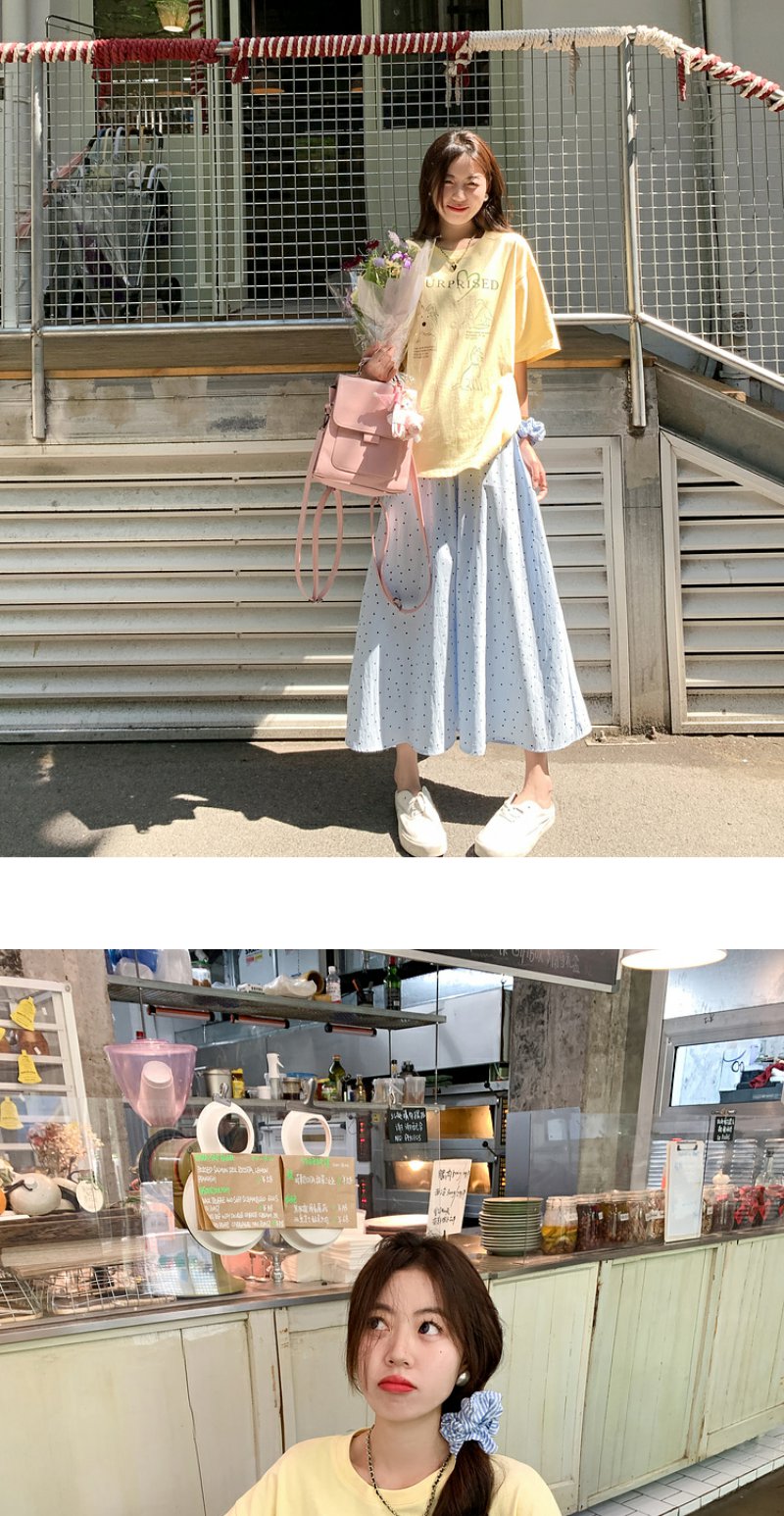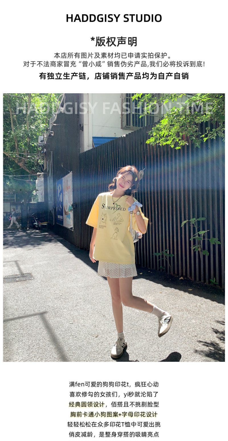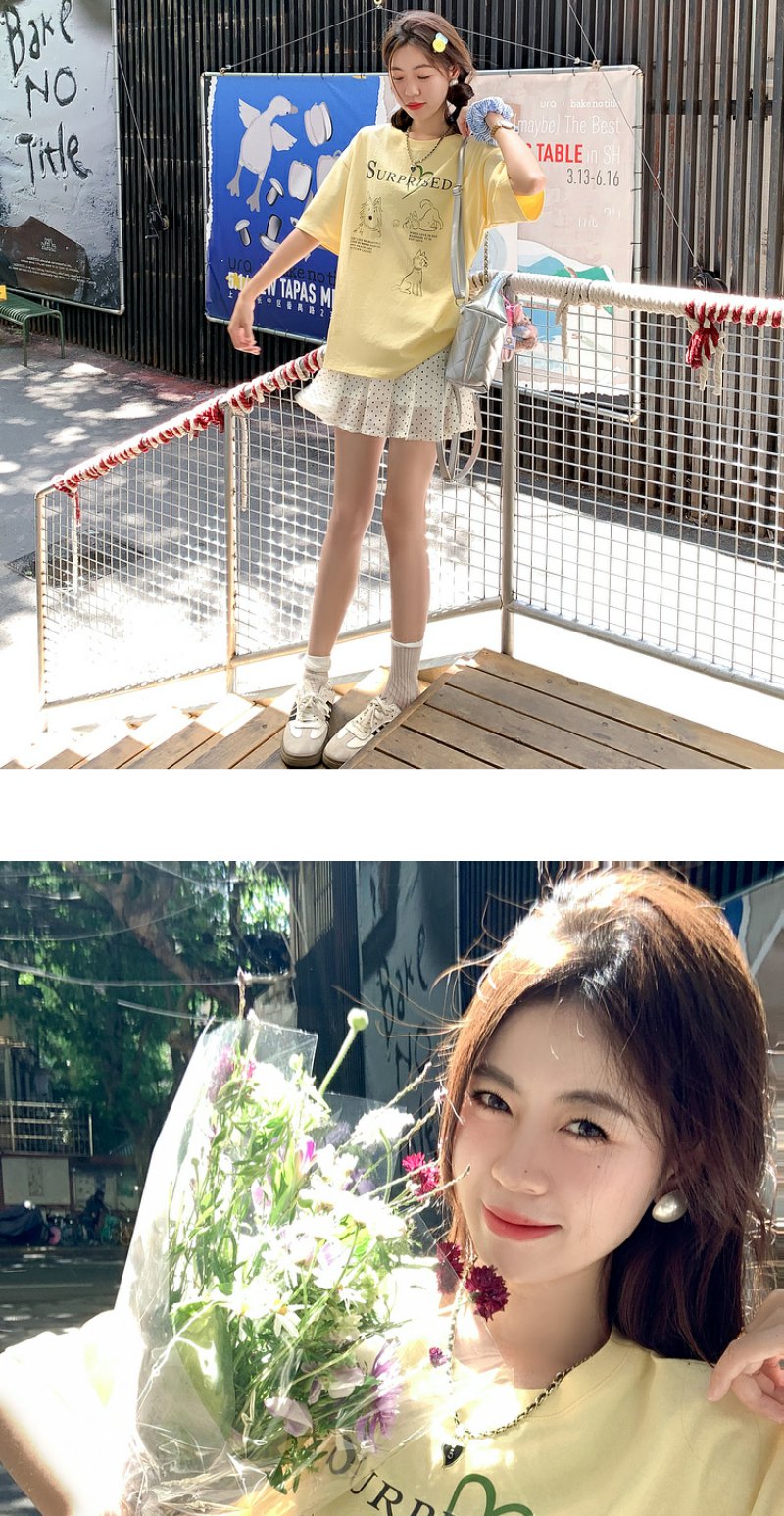 <曾小咸推荐>【甜甜软糖】黄色印花字母短袖T恤+半裙