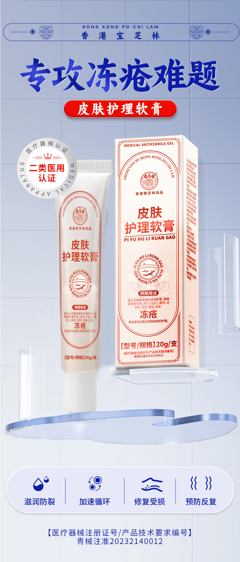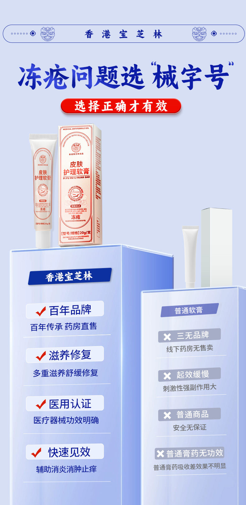 疯抢中!【香港老字号 秋冬手足冻疮克星】百年传承!宝芝林医用冻疮软膏 皮肤皲裂 反复冻疮 干燥开裂 滋润皮肤护理软膏