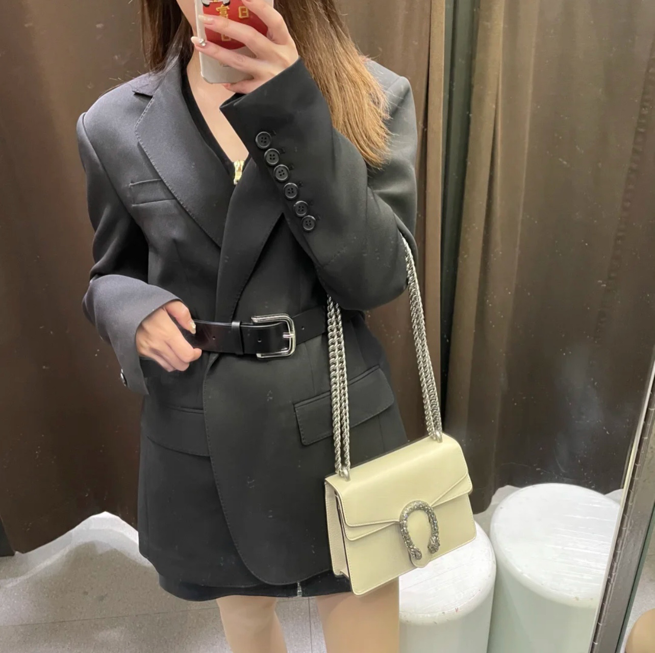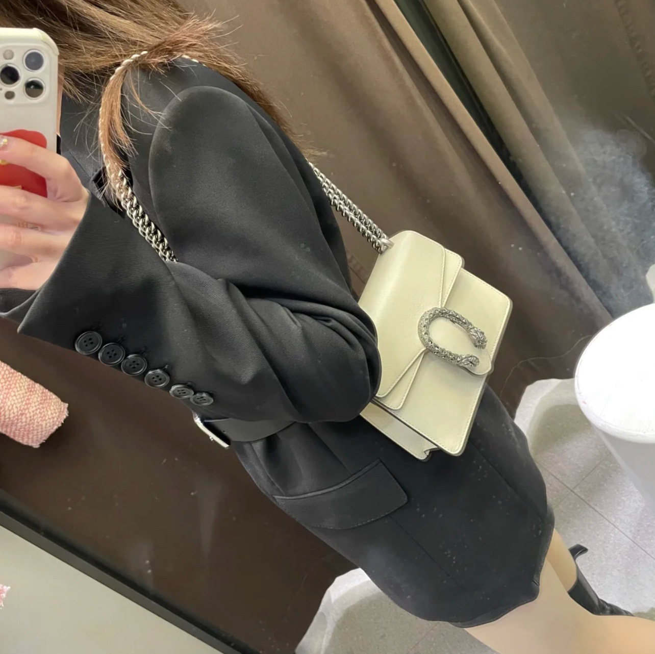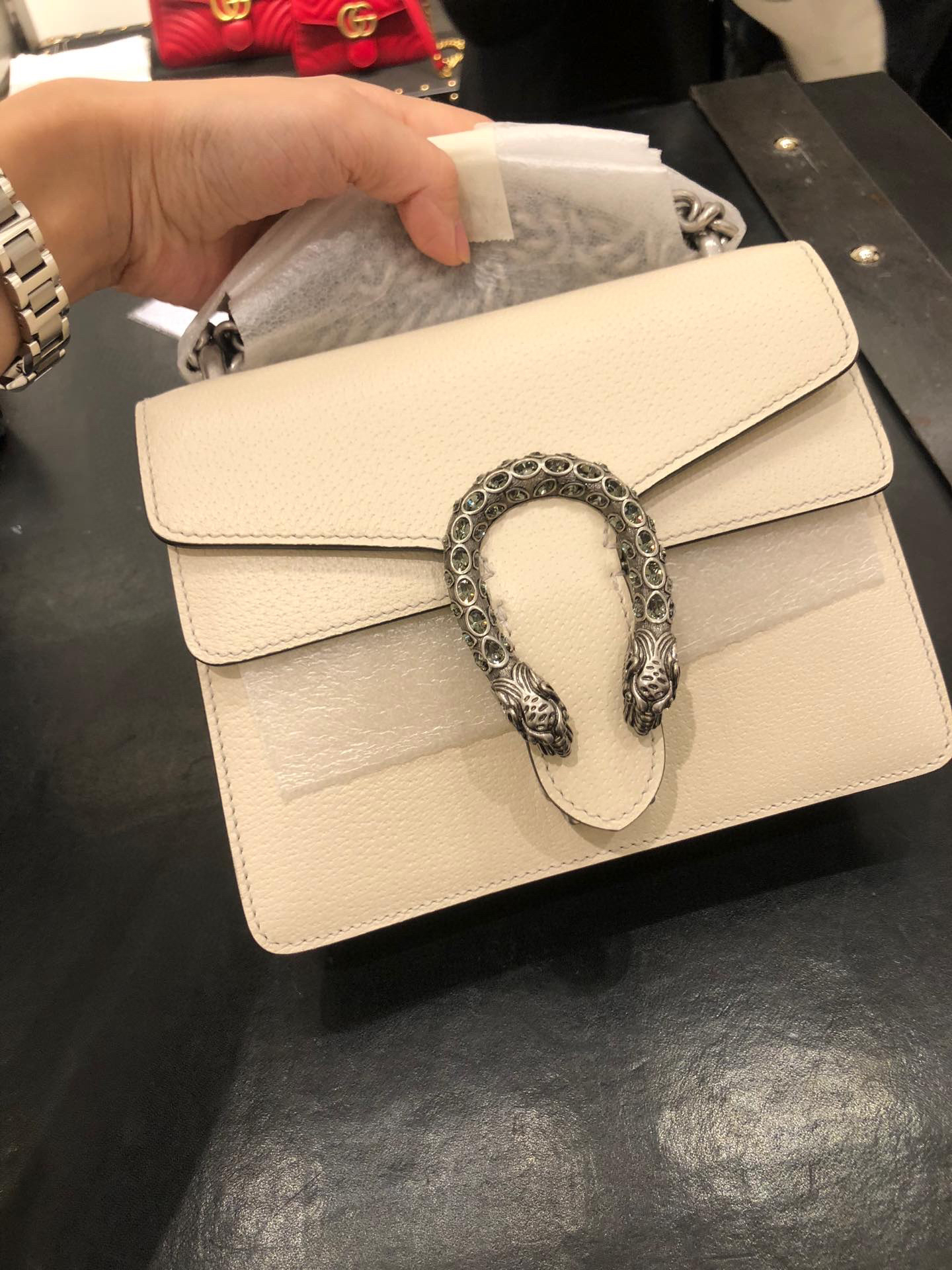 希腊文化里 虎头化身为幸运之神—承载着带给人们美好的运气,虎头扣上镶嵌施华洛世奇水晶钻,让整个包的气质瞬间加分,纯洁无暇的白色,让人感受到了一股夏日的清凉,给人一种纯洁单纯的情感,包身内设隔层设计,更好的为小仙女们容纳日常使用,可斜挎/肩背的多种背法,让你日常随意搭配,神仙颜值的白色酒神包,每个小仙女都逃不过它的美!