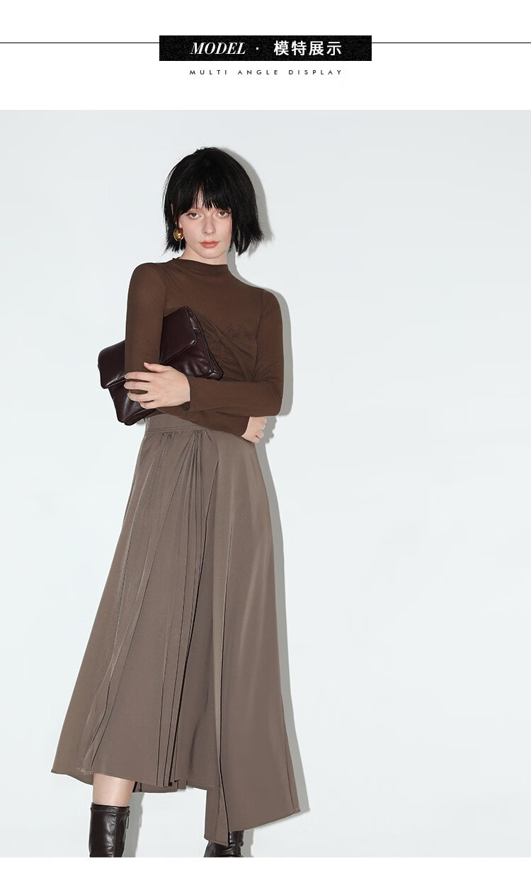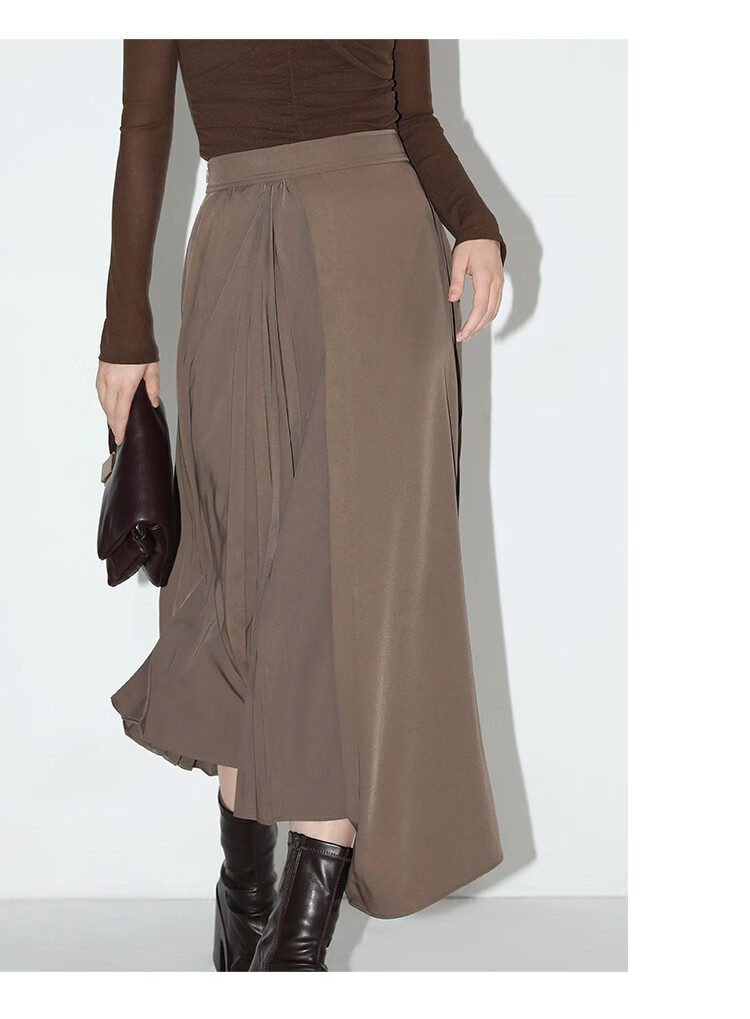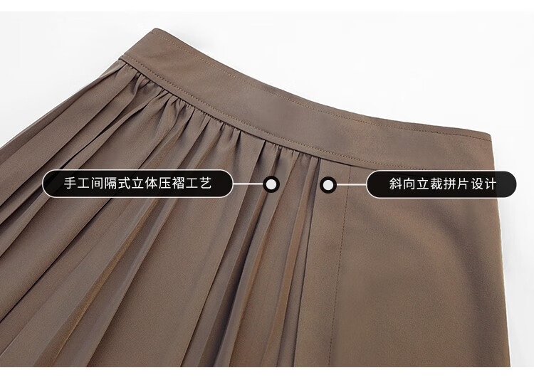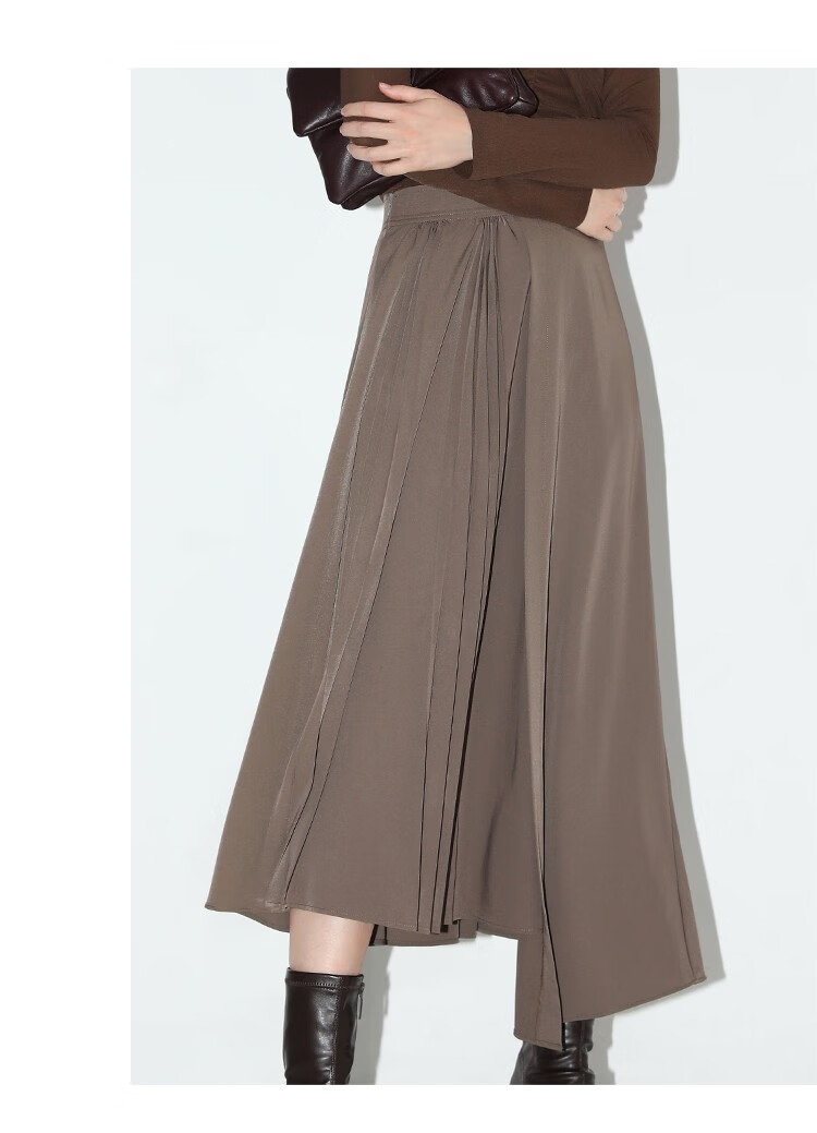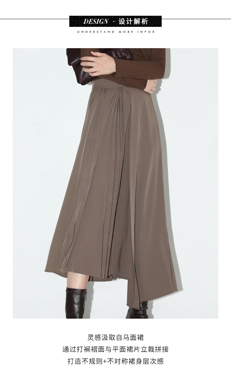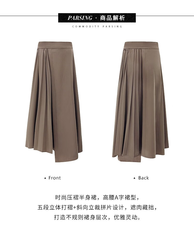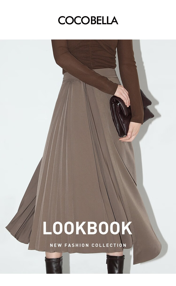 COCOBELLA重工压褶不对称拼接半身裙女秋垂坠高腰百褶裙HS905