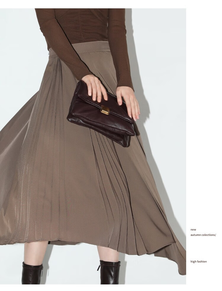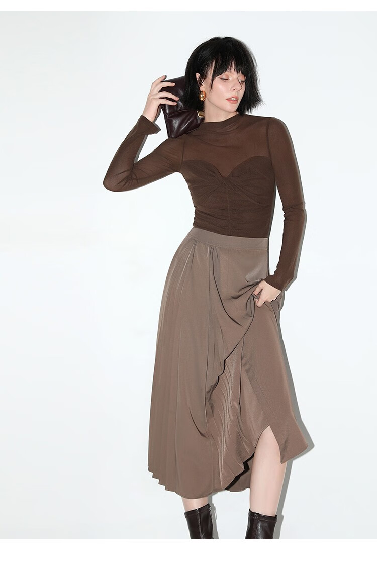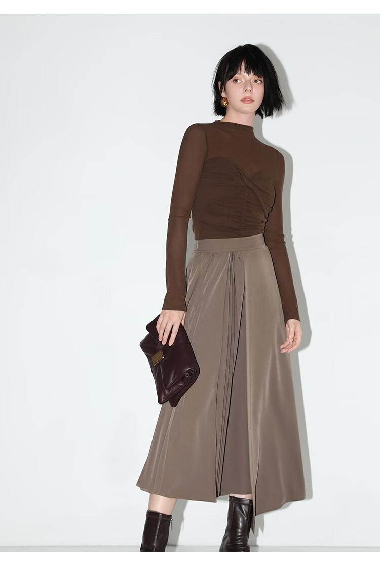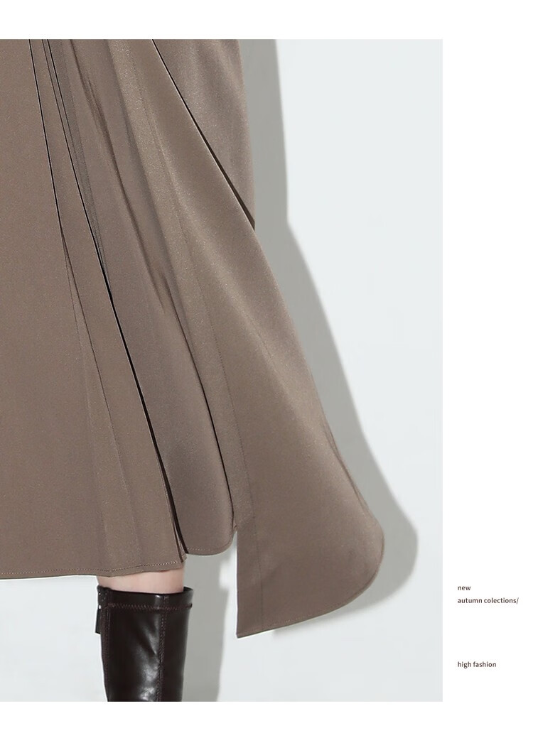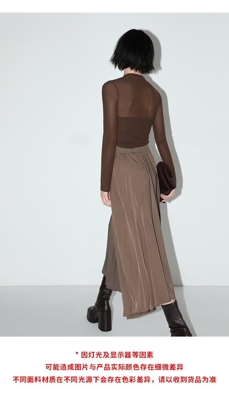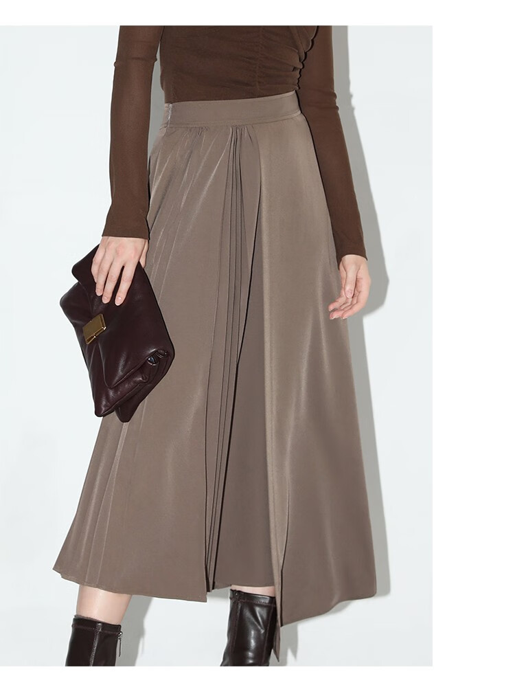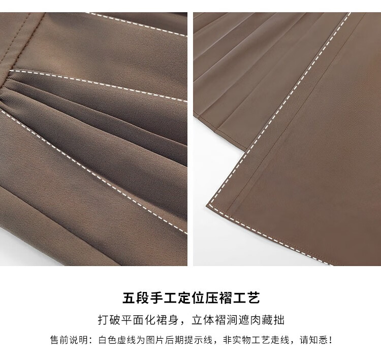COCOBELLA重工压褶不对称拼接半身裙女秋垂坠高腰百褶裙HS905