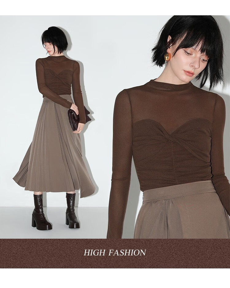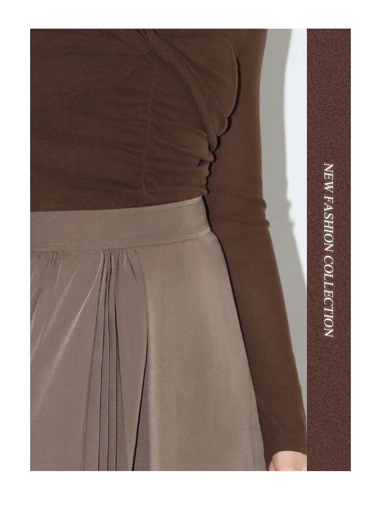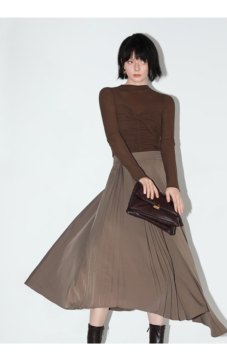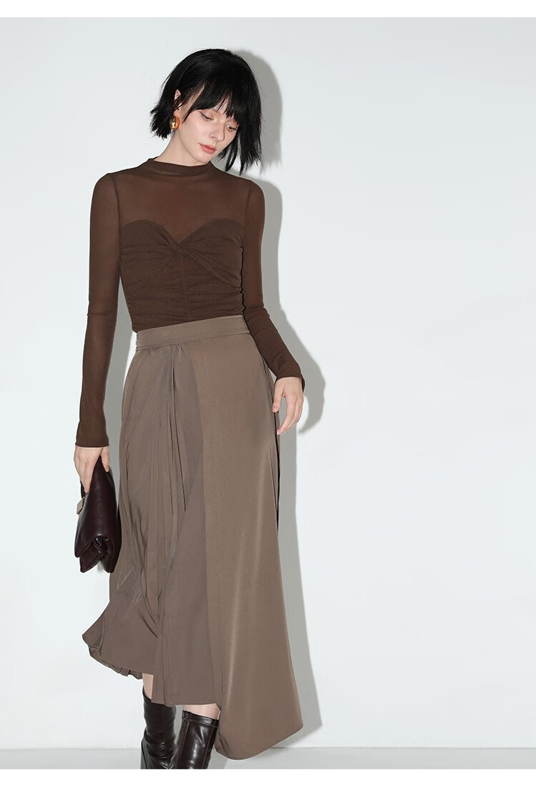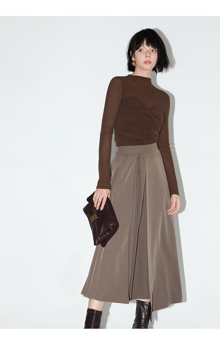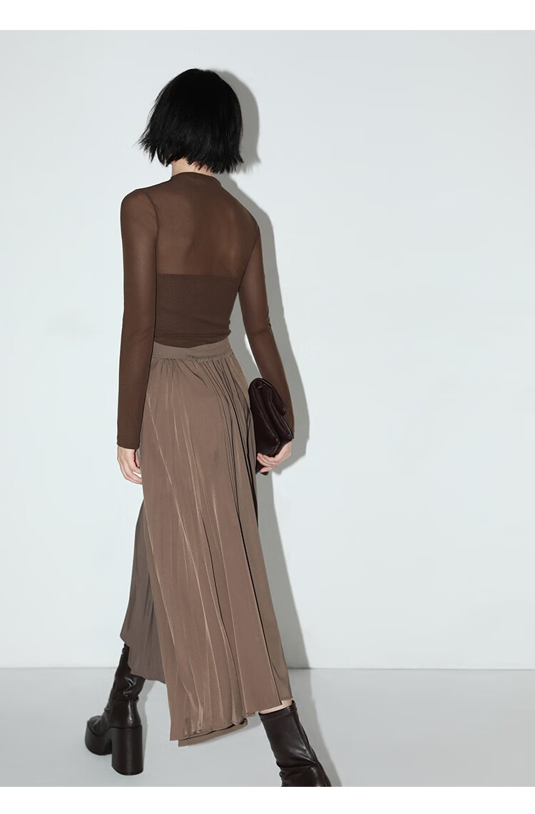 COCOBELLA重工压褶不对称拼接半身裙女秋垂坠高腰百褶裙HS905