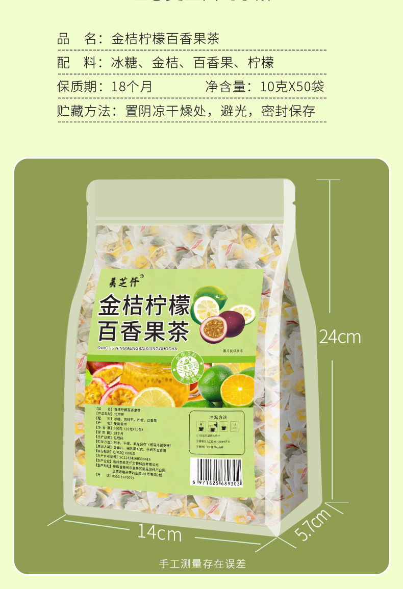 「50包送杯子!每日一杯」金桔柠檬青桔百香果茶纯水果冲饮冻干蜂蜜果粒花茶冷泡茶水果茶饮水包