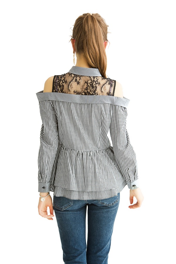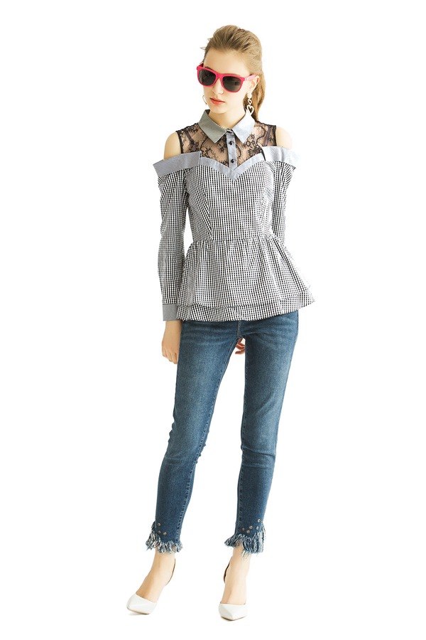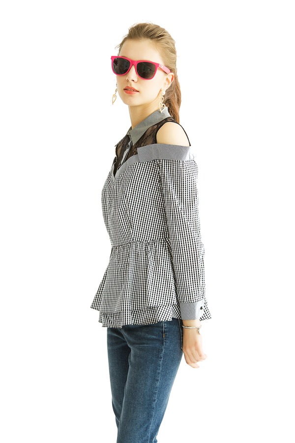 EVA OUXIU伊华欧秀 仿两件格纹蕾丝衬衫 1666