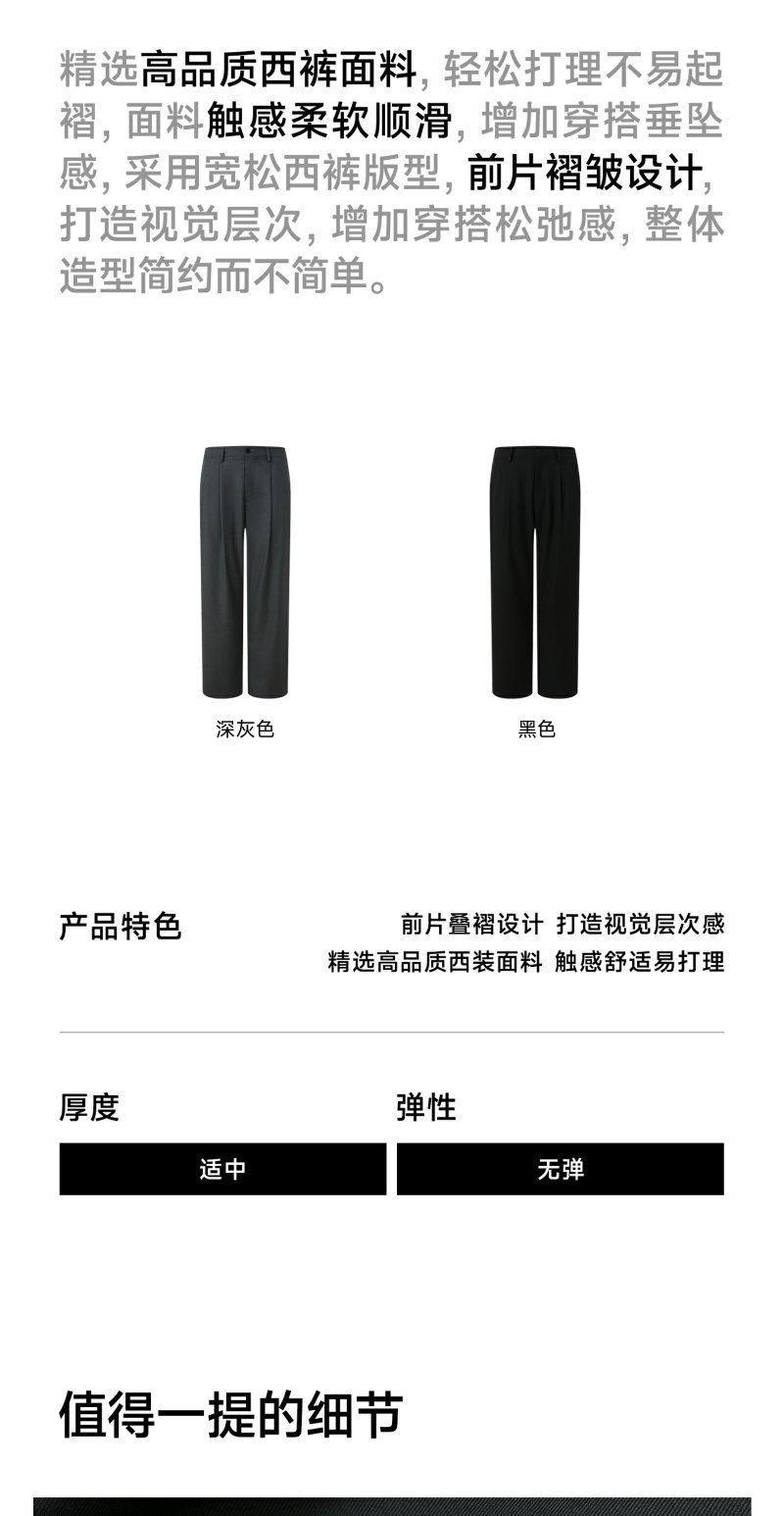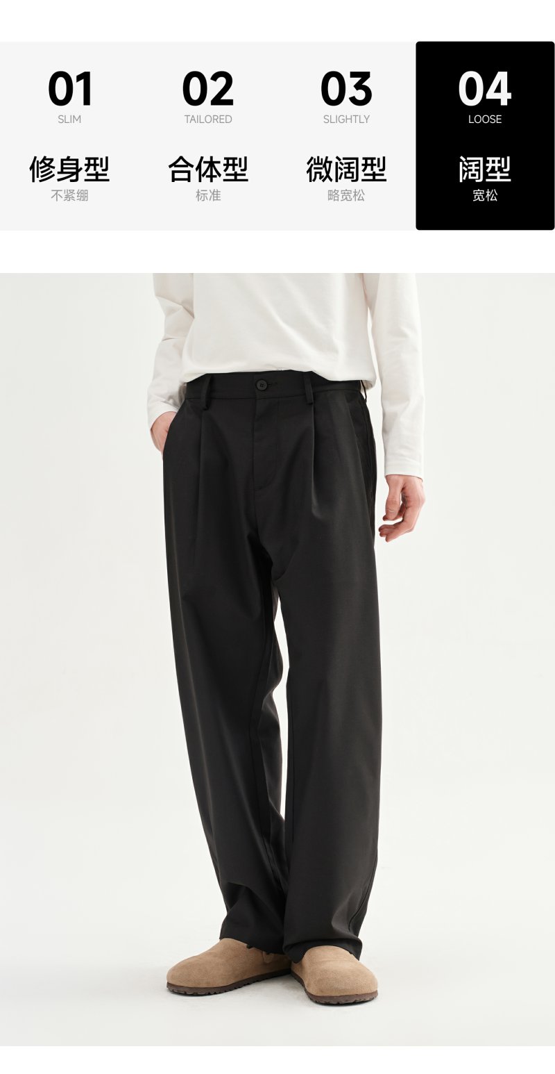 CHINISM赤尘 黑色轻薄西裤男直筒夏季新款休闲裤男士宽松褶皱裤子