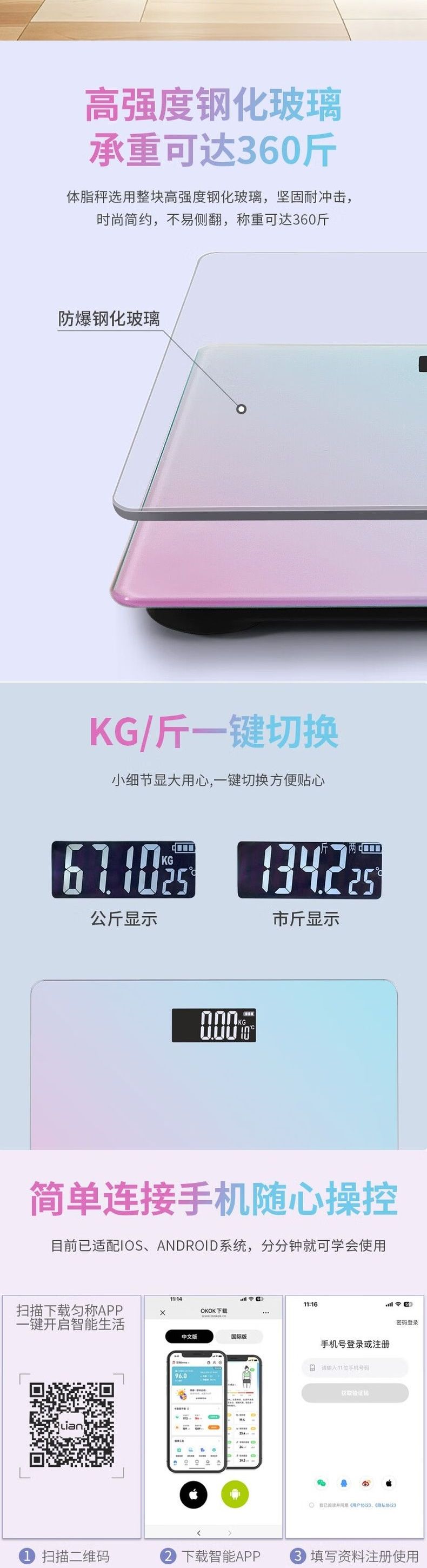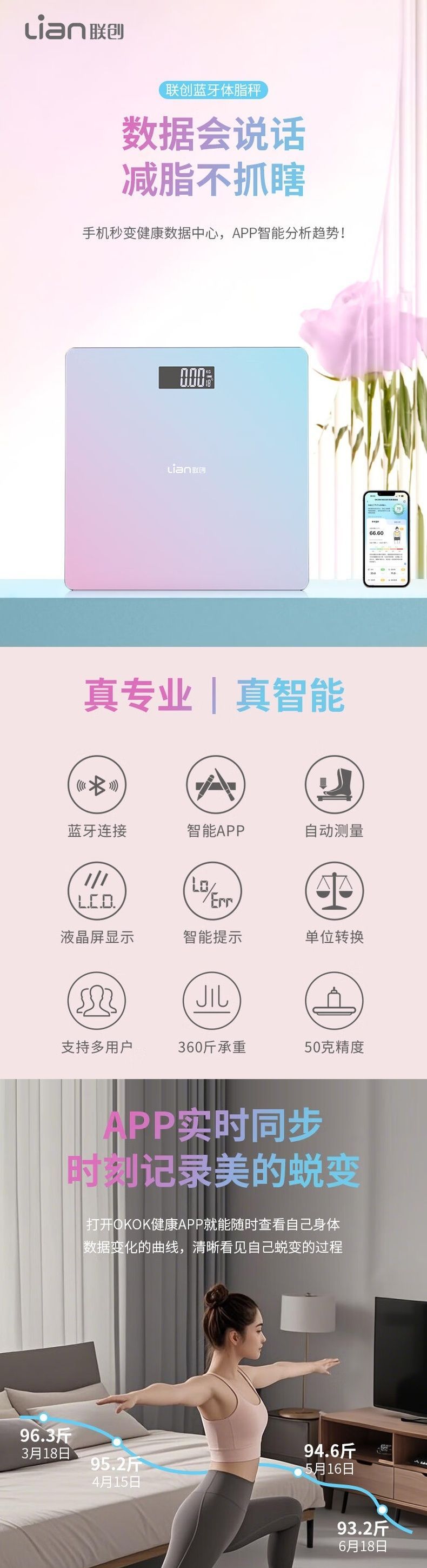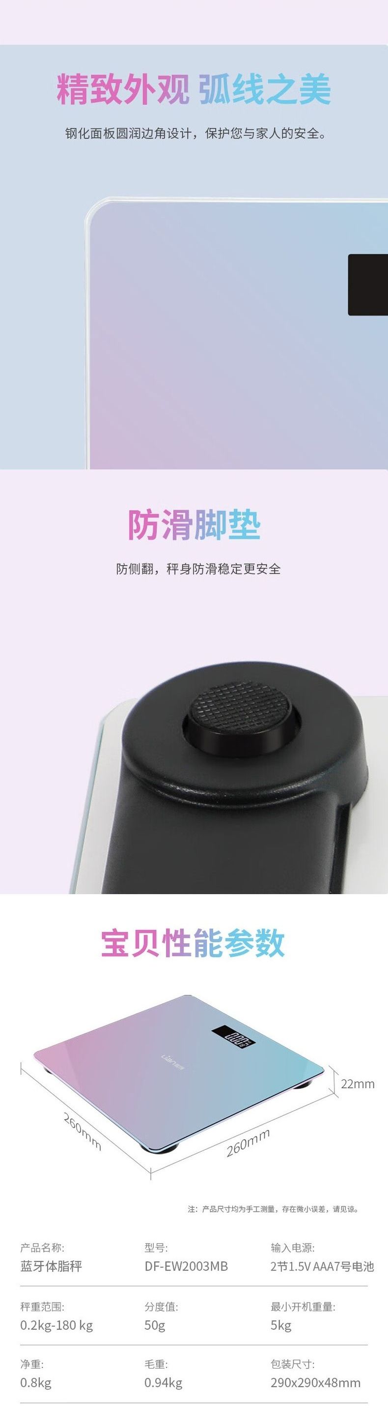 联创 蓝牙体脂秤 DF-EW2003MB 体脂秤智能蓝牙APP测脂肪率