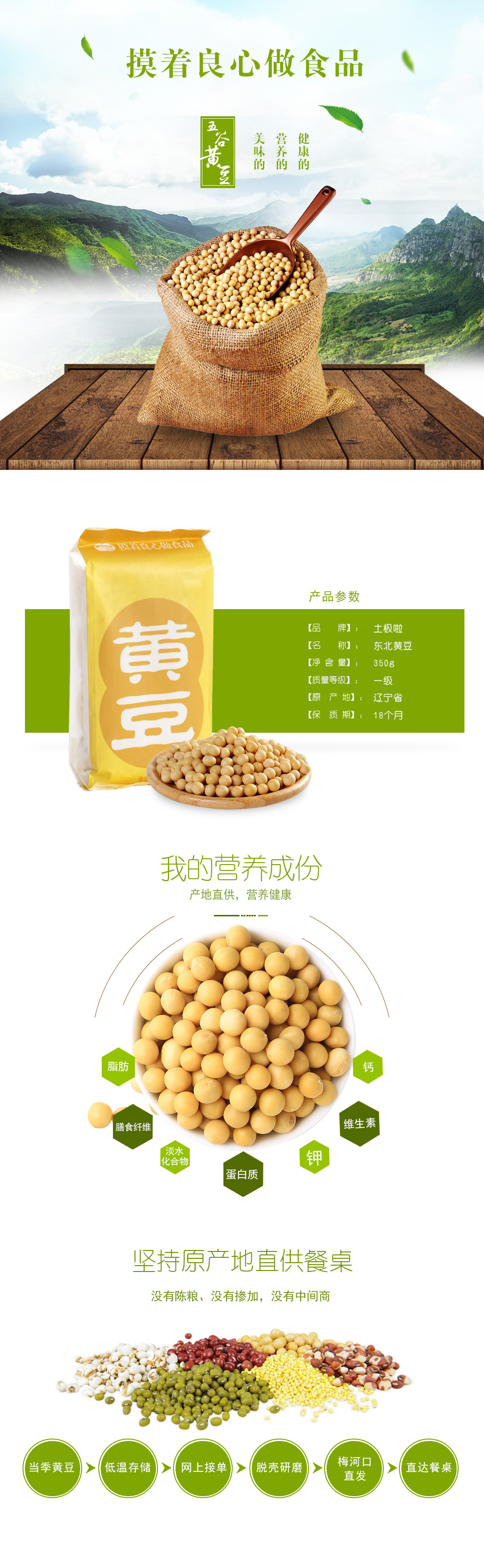 【自营】土极啦黄豆 东北特产五谷杂粮 350g*4袋 JUNONG-018