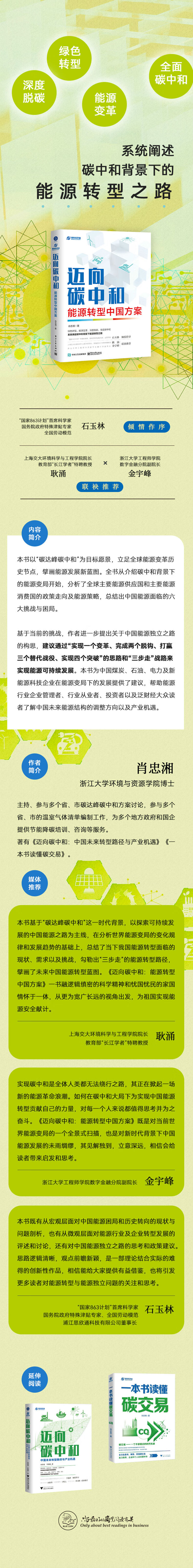 肖忠湘,浙江大学环境与资源学院博士,主持参与多个省、市碳达峰碳中和方案讨论,参与多个省、市的温室气体清单编制工作,为多个地方政府和国企提供节能降碳培训、咨询等服务。著有《迈向碳中和:中国未来转型路径与产业机遇》《一本书读懂碳交易》。