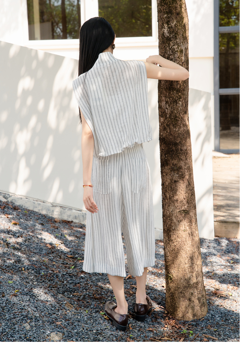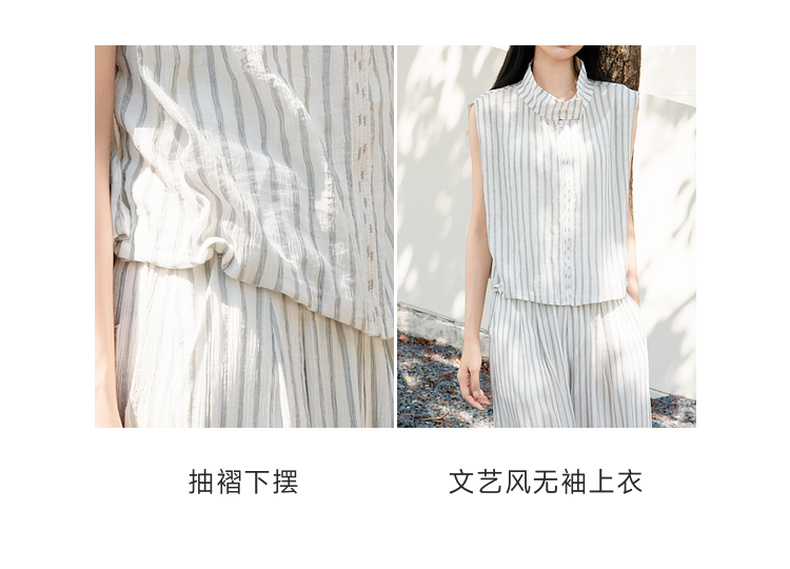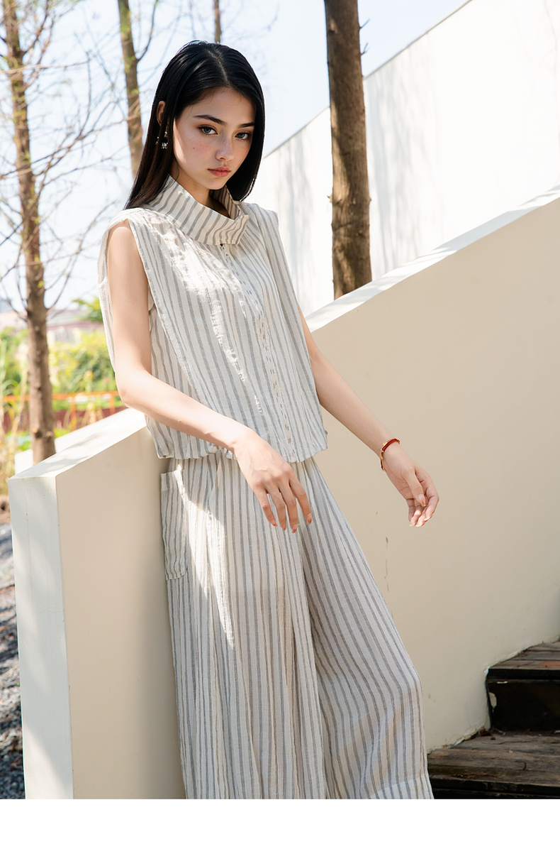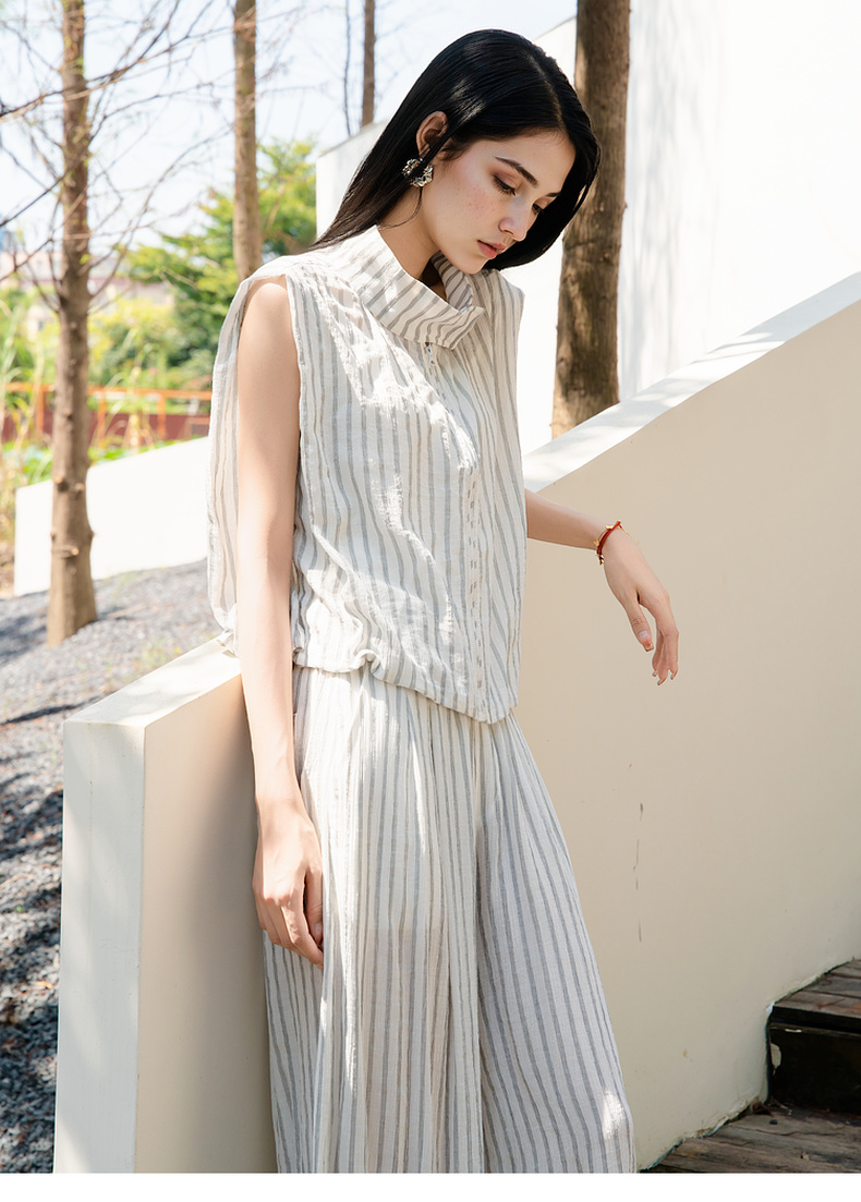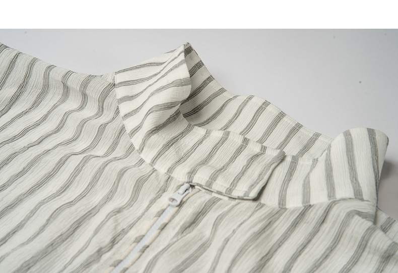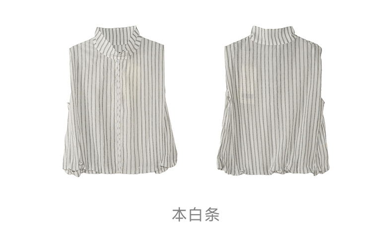 谜底无袖上衣女2025夏新款通勤风气质宽松条纹拉链衬衫25BMS5009