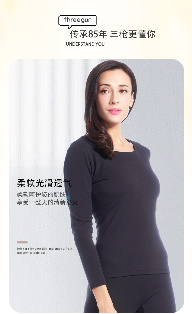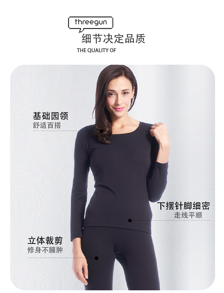 Threegun三枪 丝柔皮马棉圆领女打底衫-22976A921