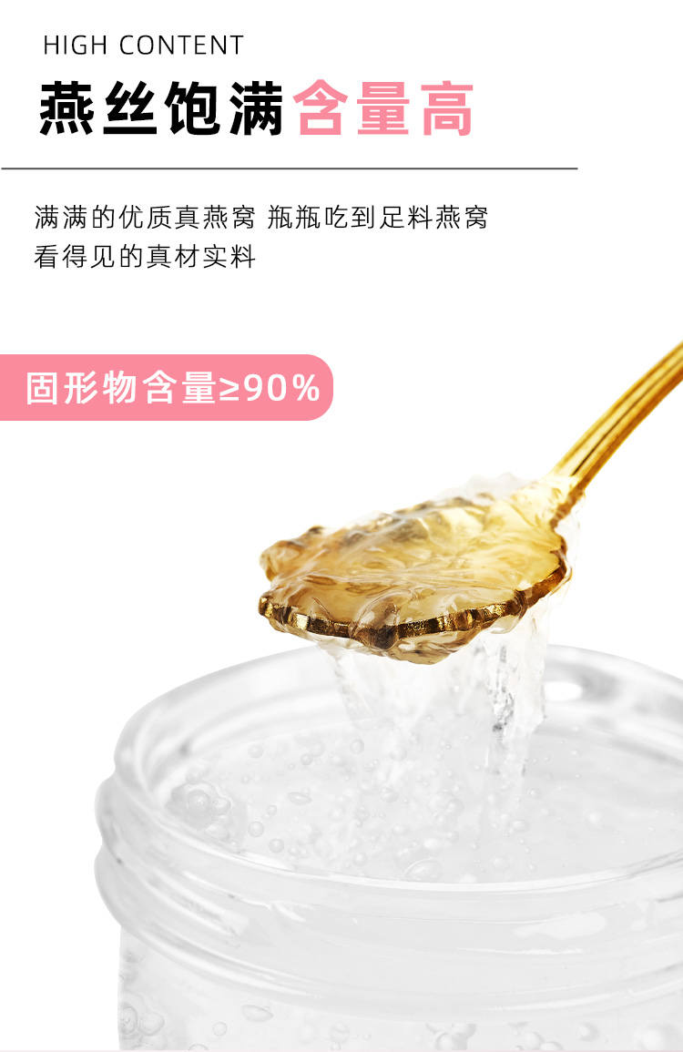 成分:纯净水、燕窝、黄冰糖(需要无糖或白冰糖请注明)每次一瓶,开盖即食