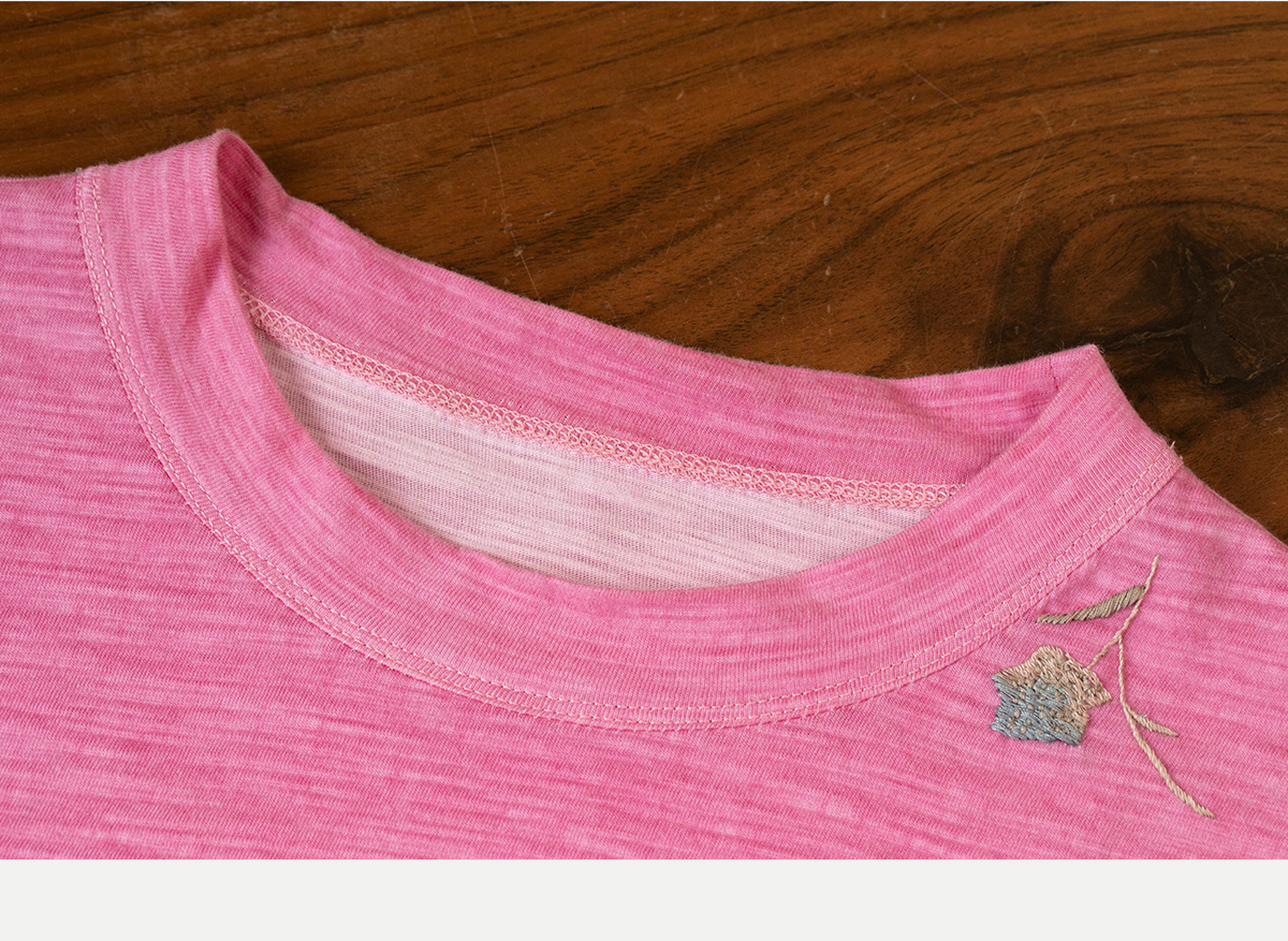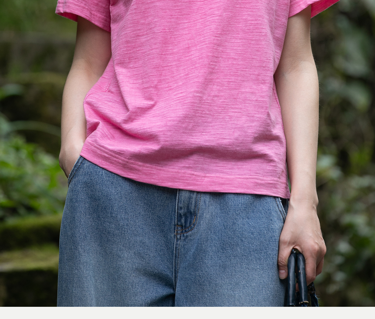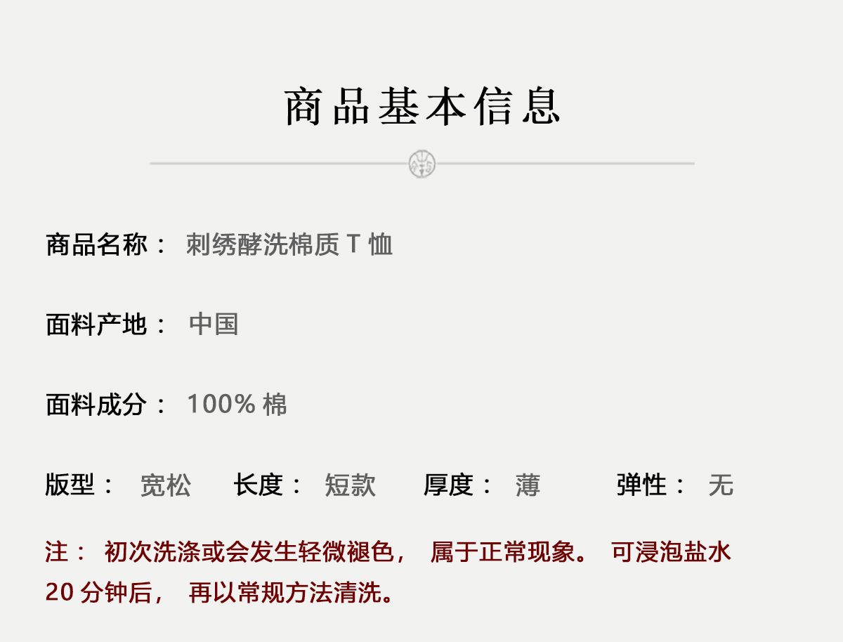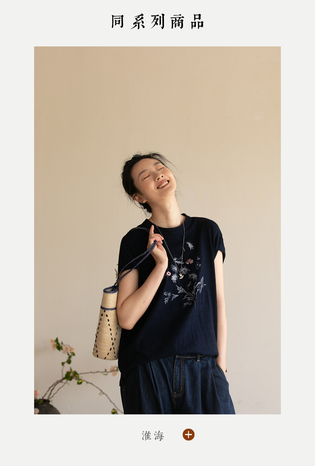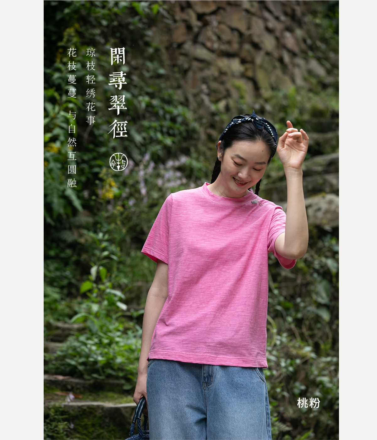 牧衣游原创手工刺绣酵洗棉质T恤圆领简约纯色百搭休闲短袖 绵绵梦