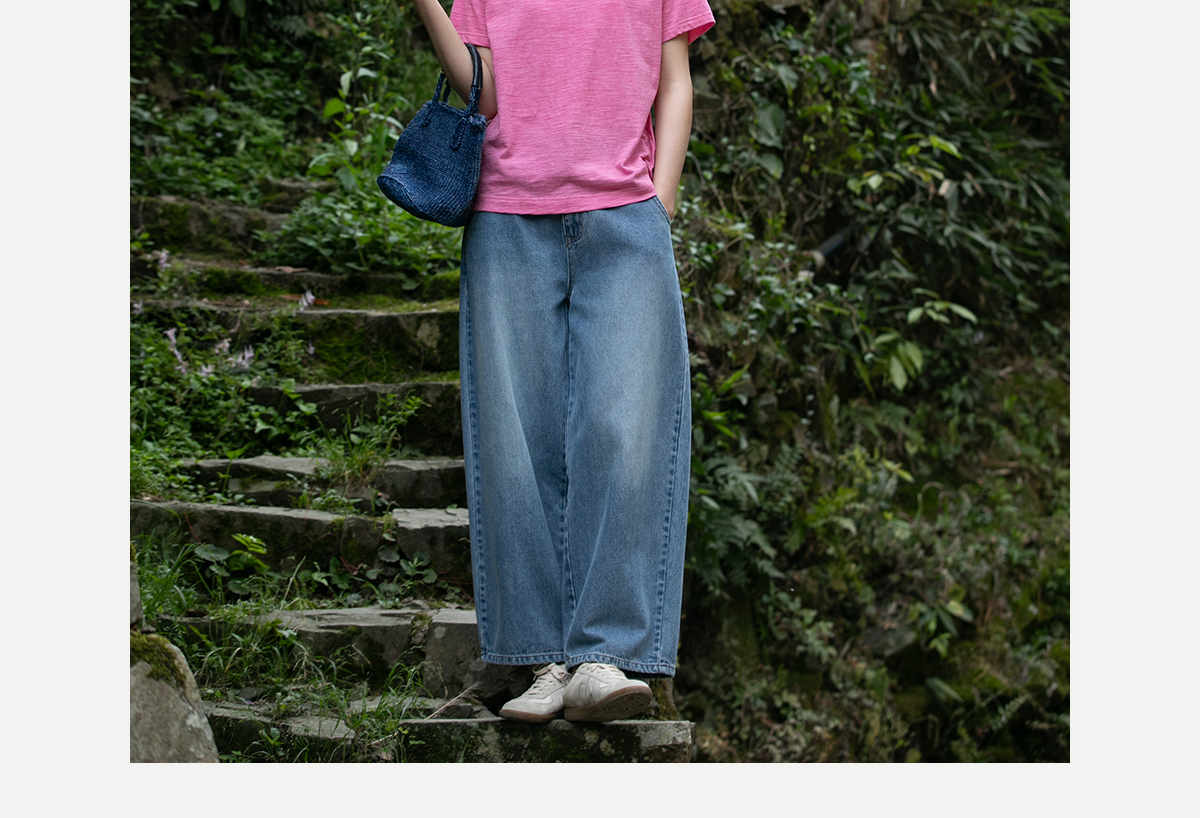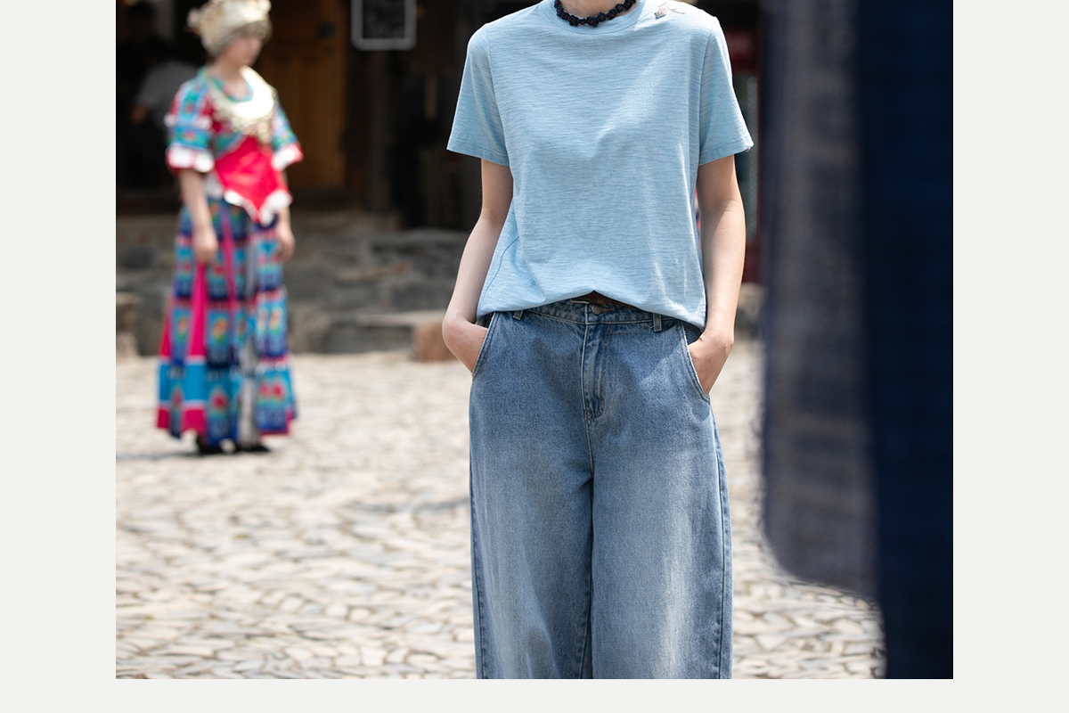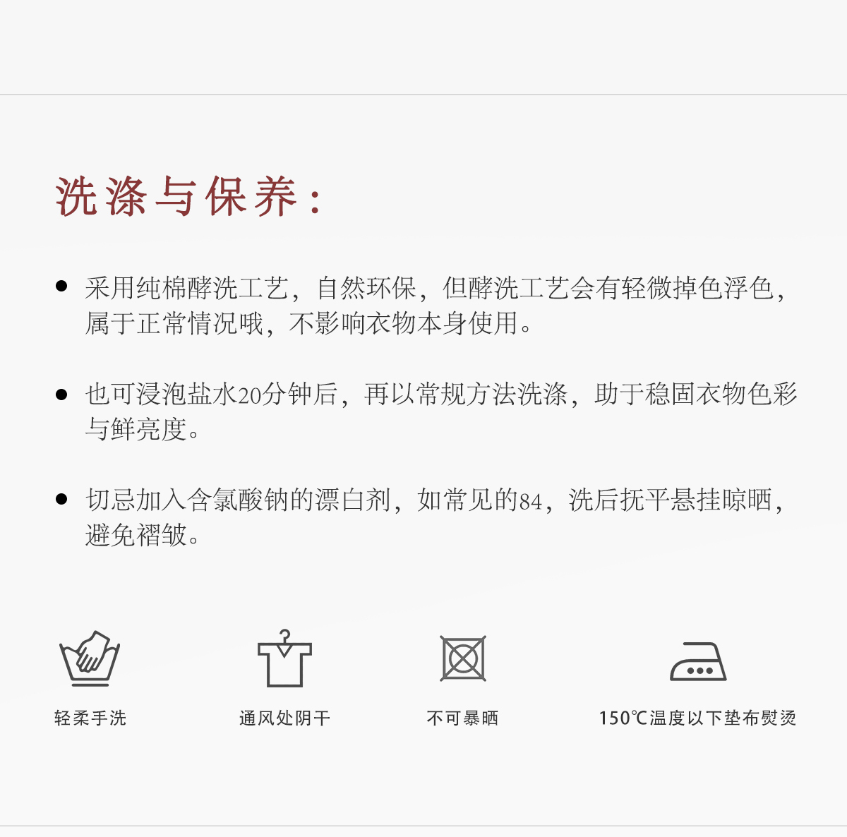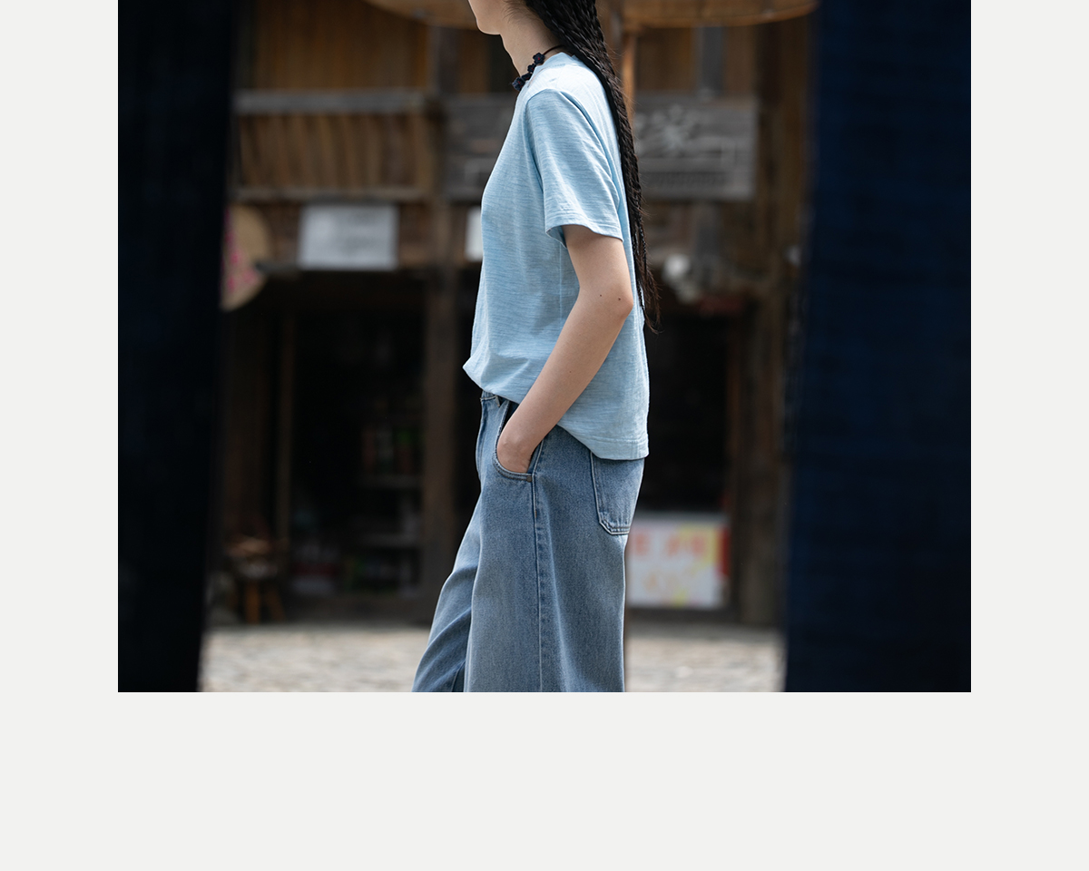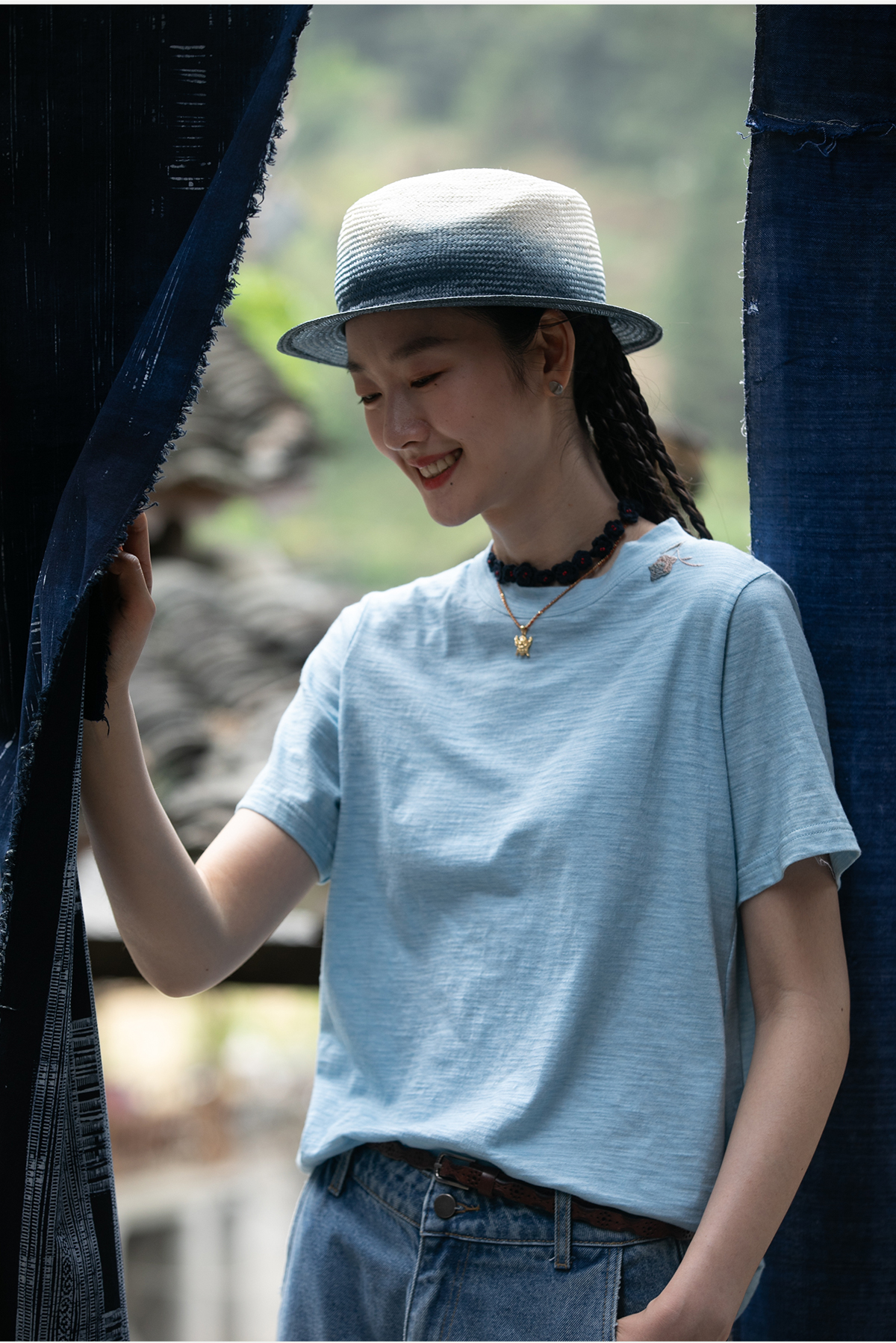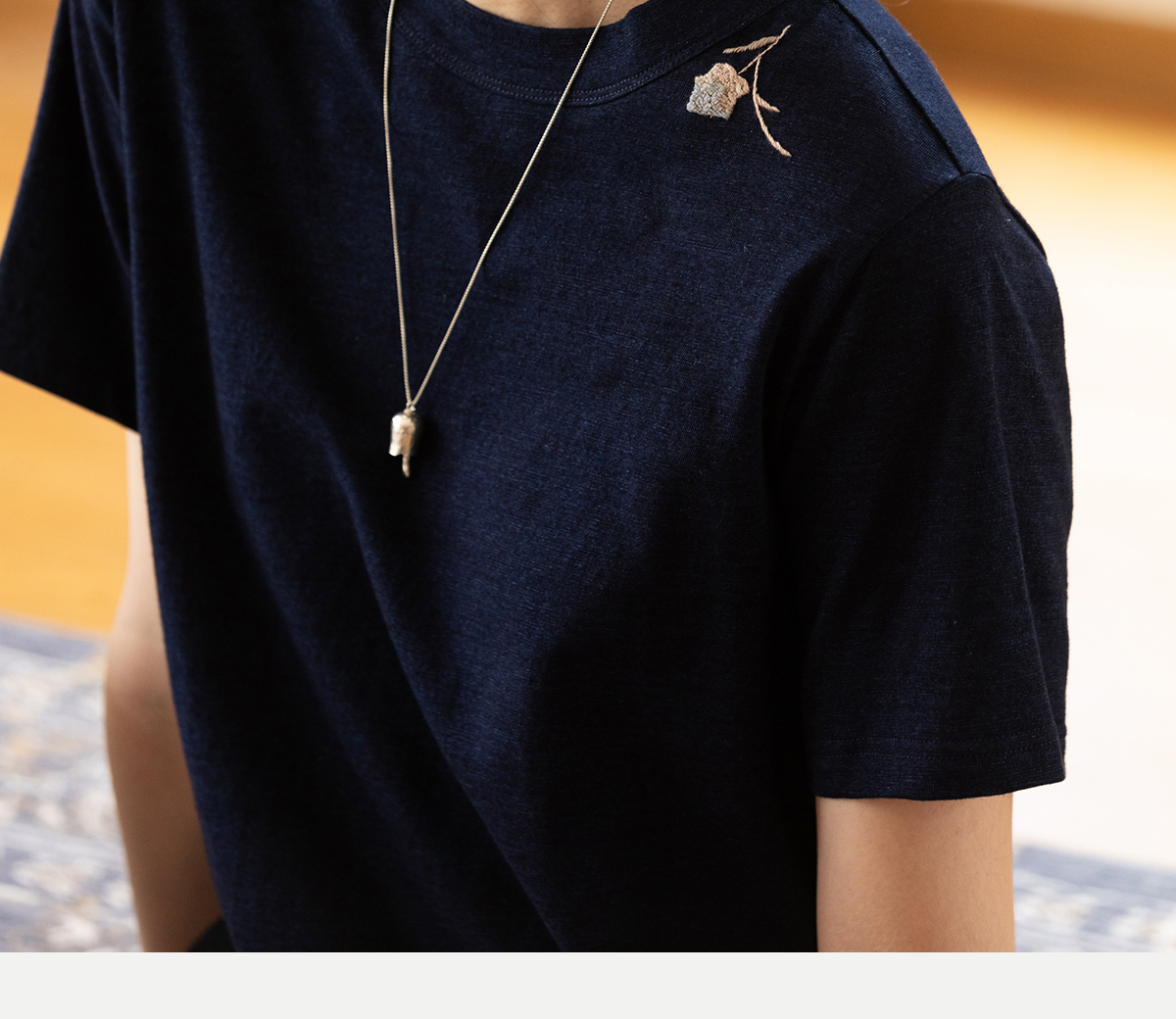 牧衣游原创手工刺绣酵洗棉质T恤圆领简约纯色百搭休闲短袖 绵绵梦