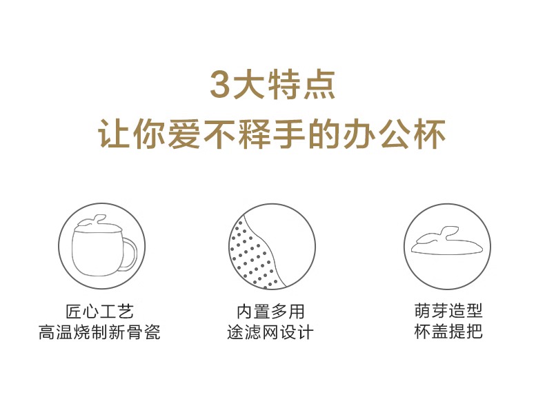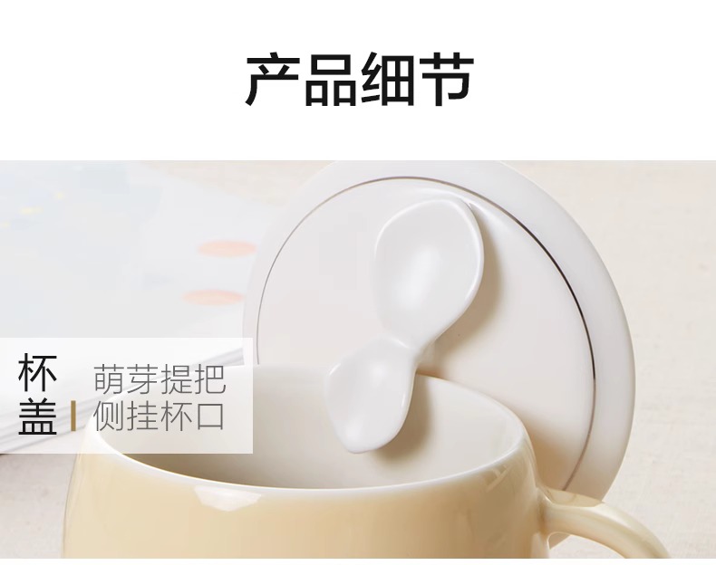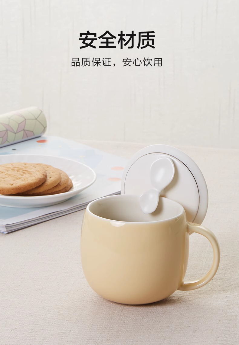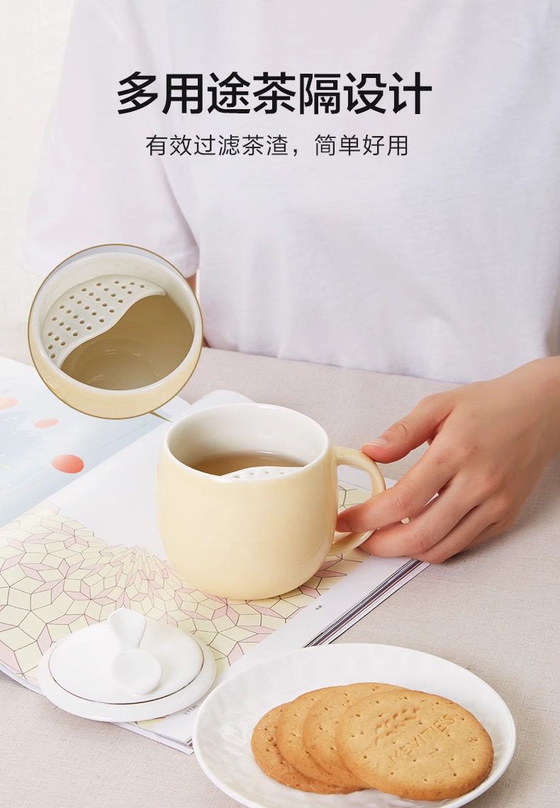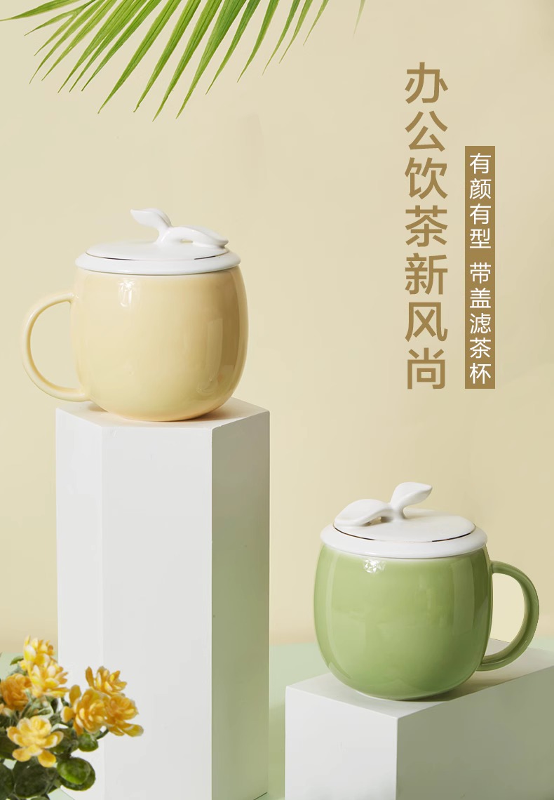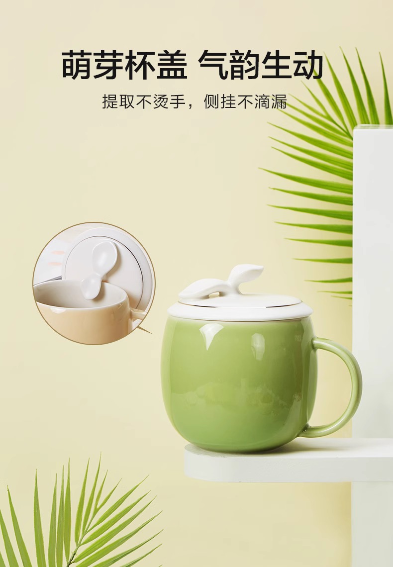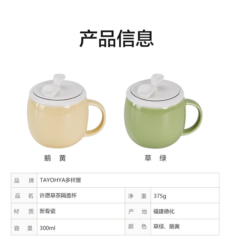 【多样屋专柜】多样屋许愿草茶隔盖杯陶瓷水杯子带盖 草绿300ml