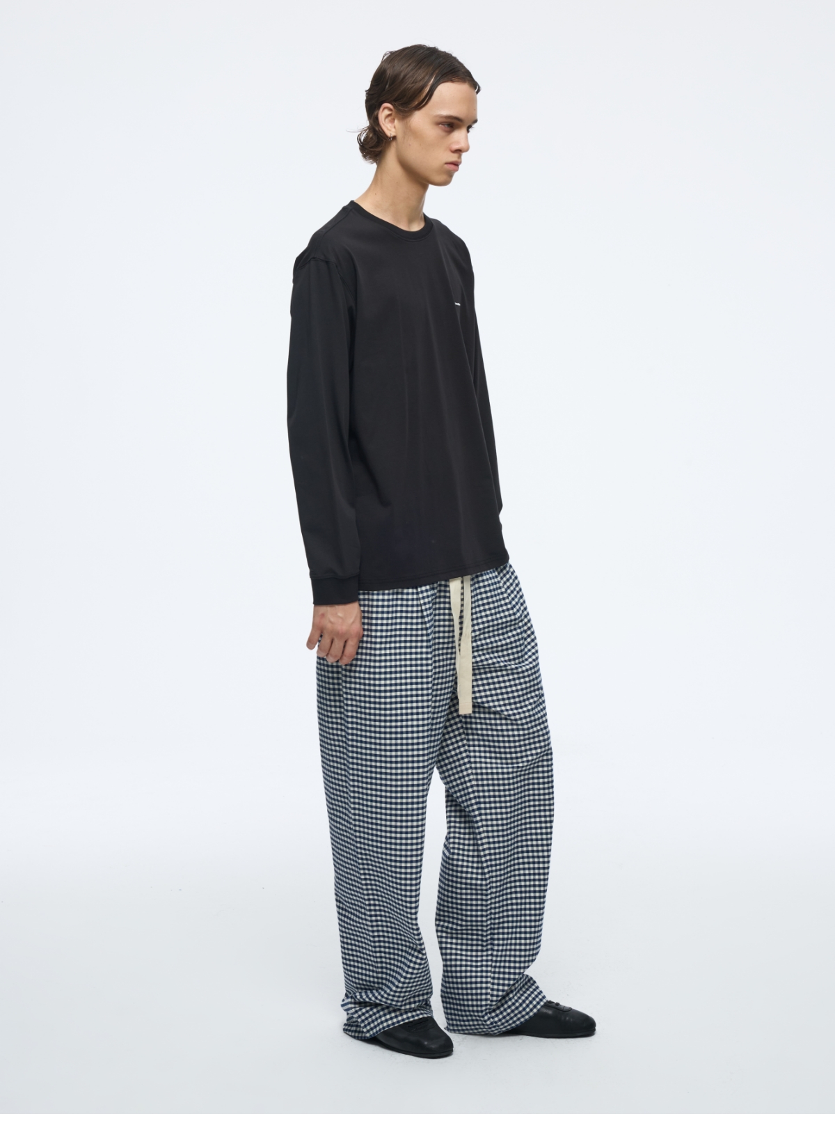 Oneup天丝亚麻系带直筒裤