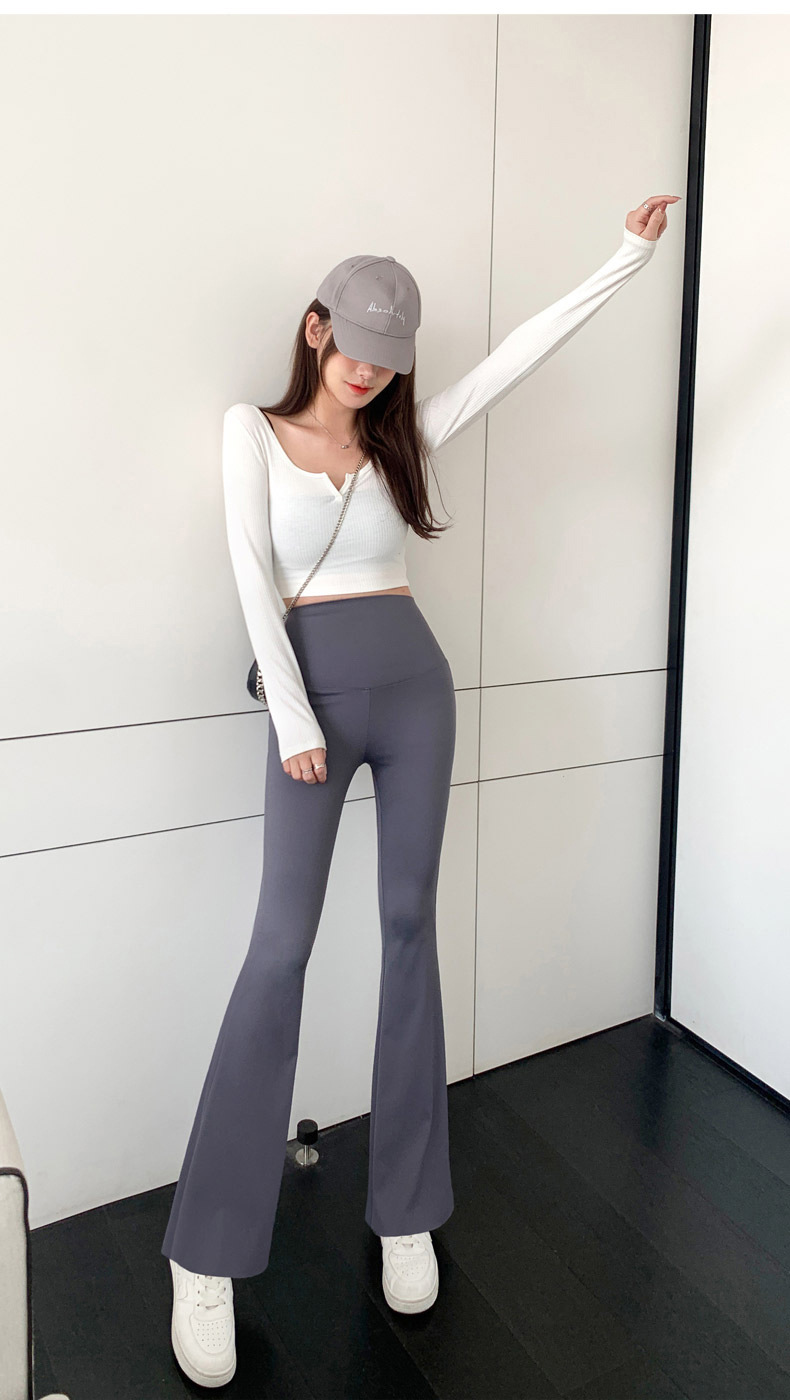 【紧身显瘦!高腰提臀】外穿高腰紧身显瘦鲨鱼裤,提臀塑型瑜伽弹力喇叭裤,时尚舒适春秋必备!卷起袖子拼搭运动衫,展现女性自信与时尚。
