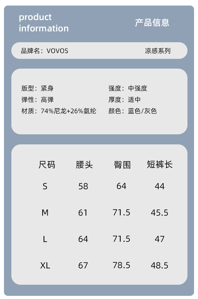 VOVOS裸感凉感瑜伽健身五分裤VDK8008