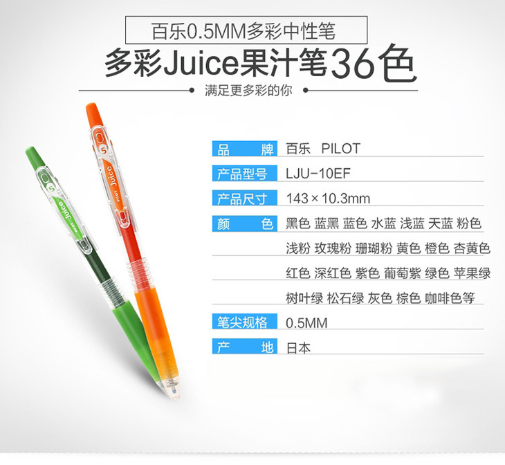 日本百乐(PILOT)JUICE彩色果汁中性笔百果乐按动水笔手账笔0.7mm LJU-60F-6CK 荧光6色套装