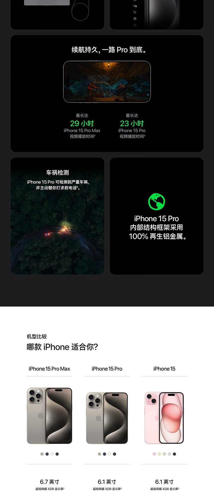 Apple iPhone 15Pro 移动联通电信手机 5G全网通手机