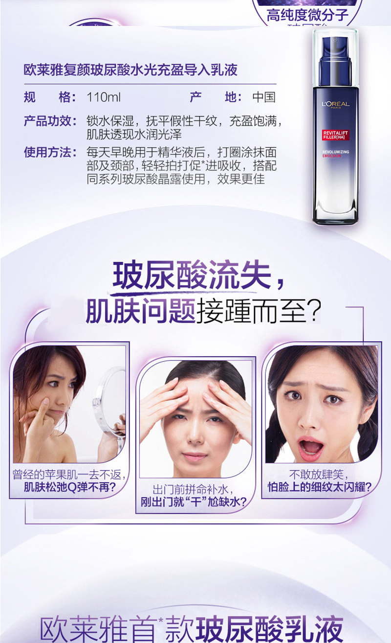 欧莱雅复颜玻尿酸水光充盈导入乳液110ml