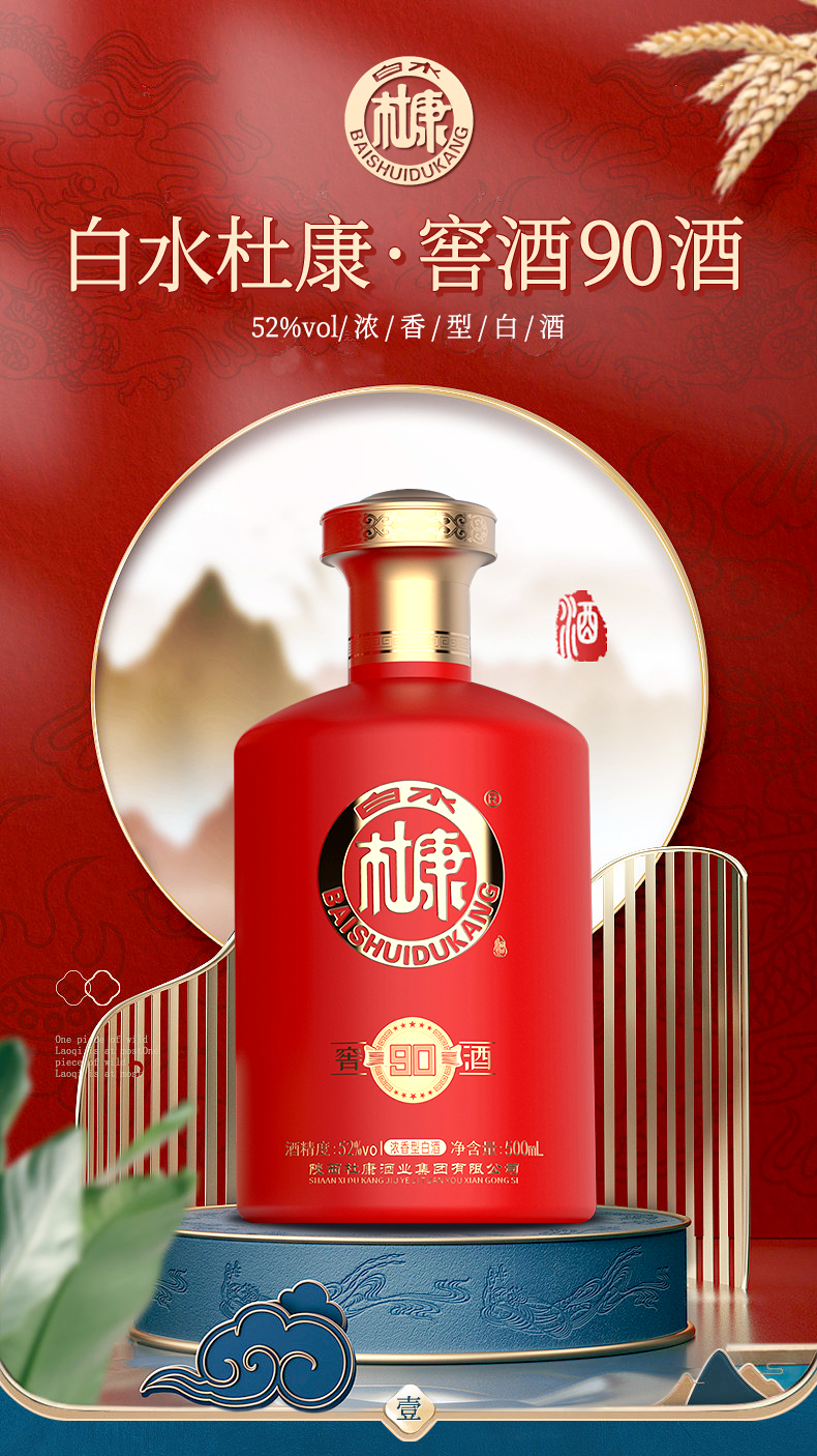 白水杜康窖酒90酒 52度整箱500ml*6瓶(酱色)
