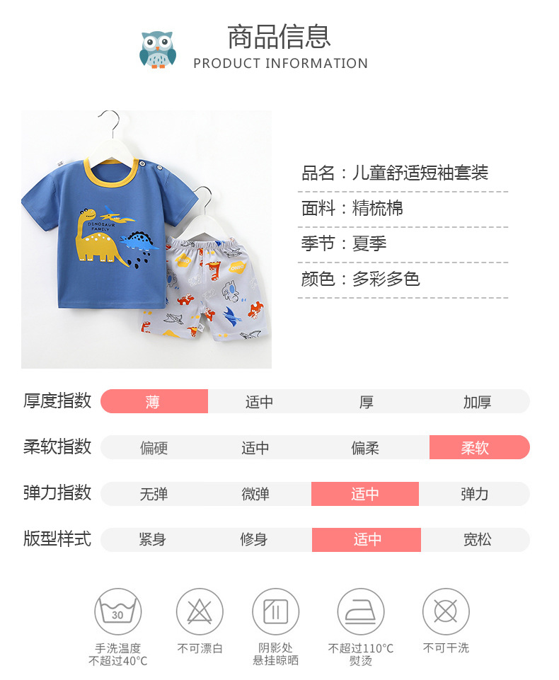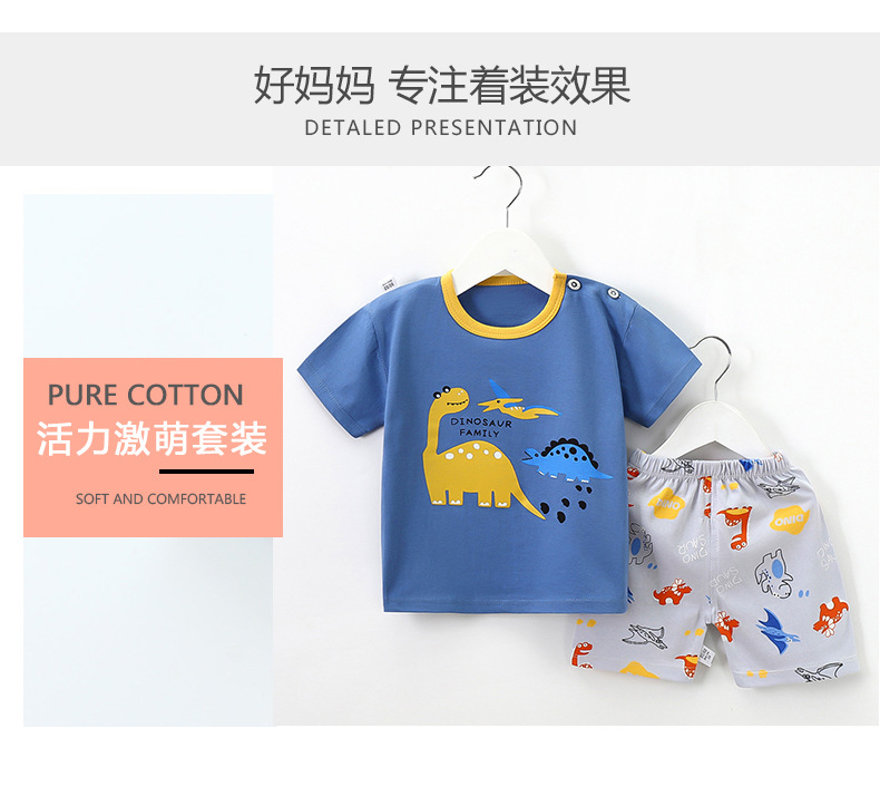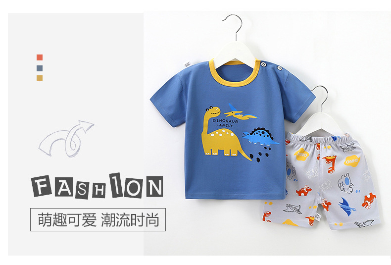 【39.9/2套】儿童短袖套装男孩纯棉夏季宝宝夏装衣服男童短裤服装两件套童装聚