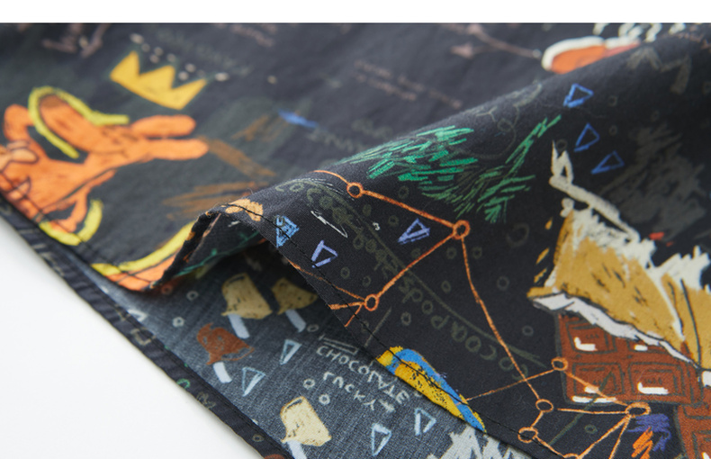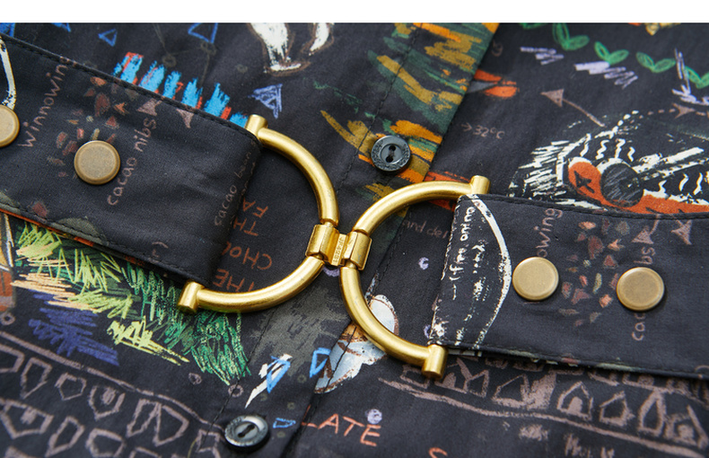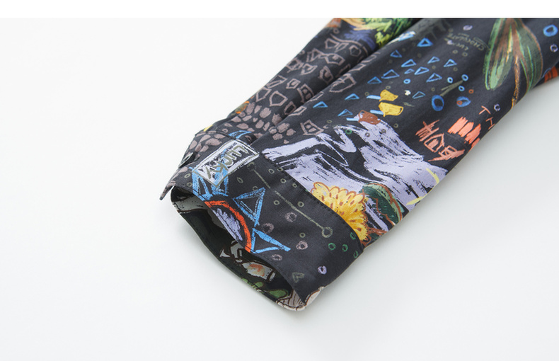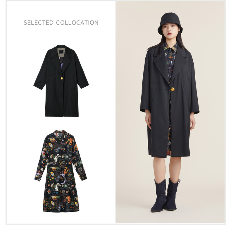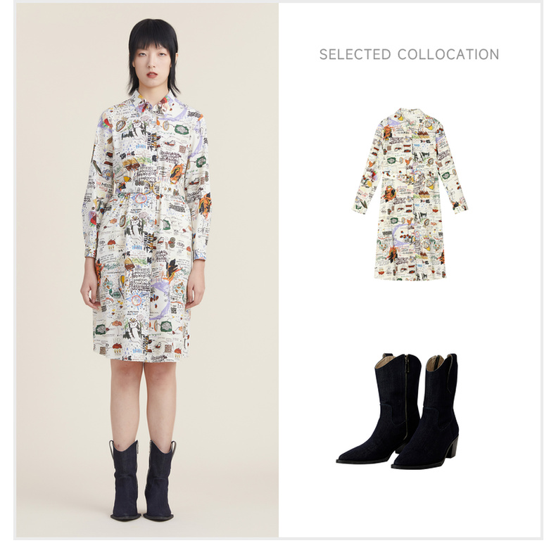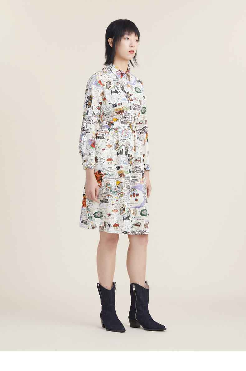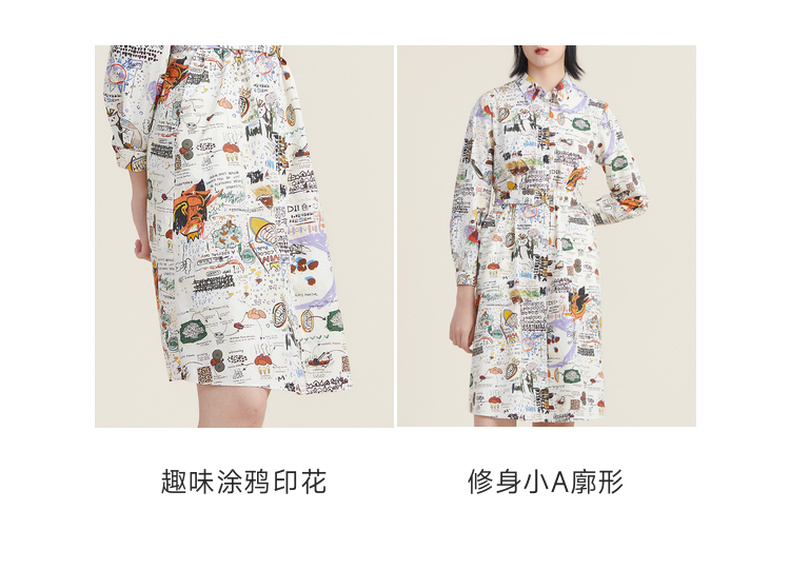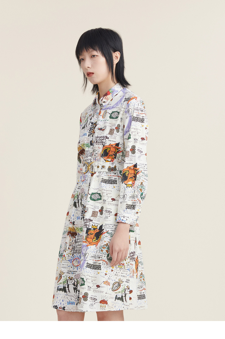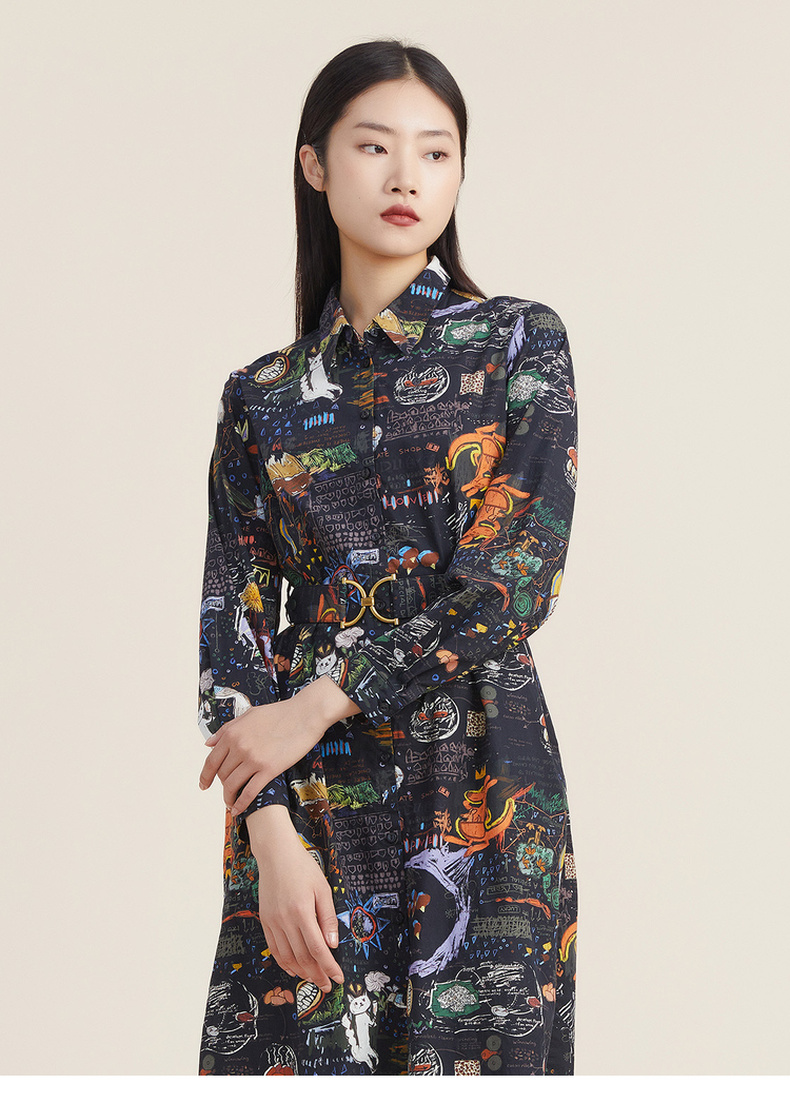 谜底2022秋新款复古趣味印花A型宽松中长款连衣裙长袖女223ML1124