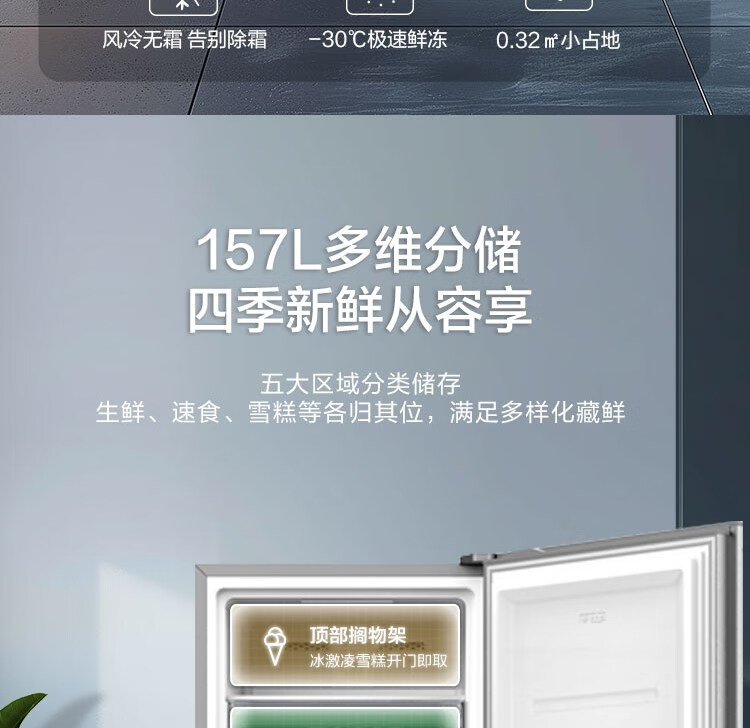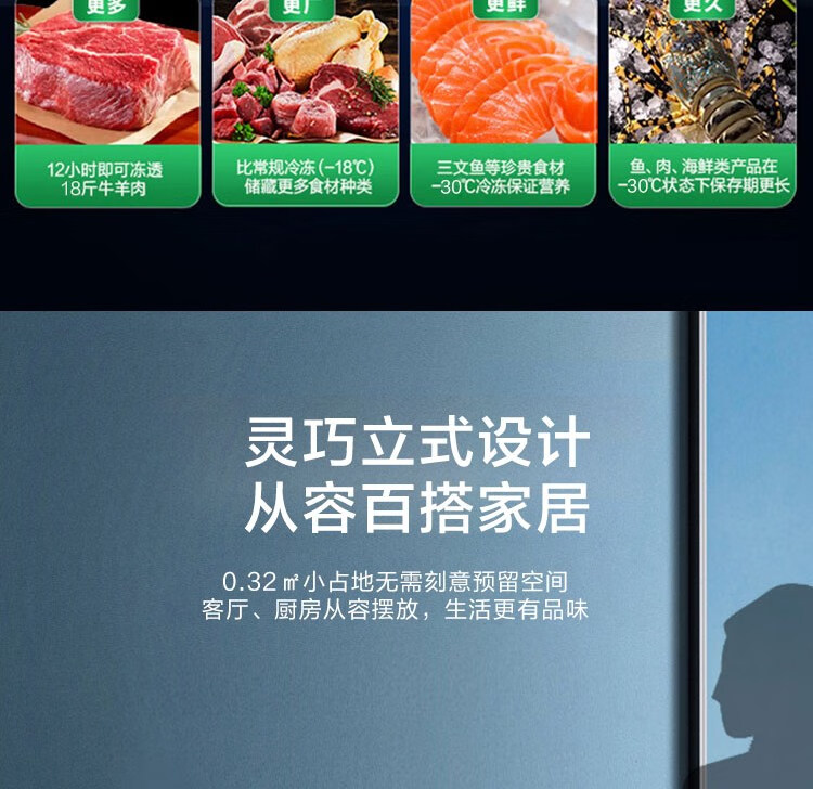 容声BD-157WCBAL/RS 零下30度极速鲜冻 157L立式冰柜 青泽影