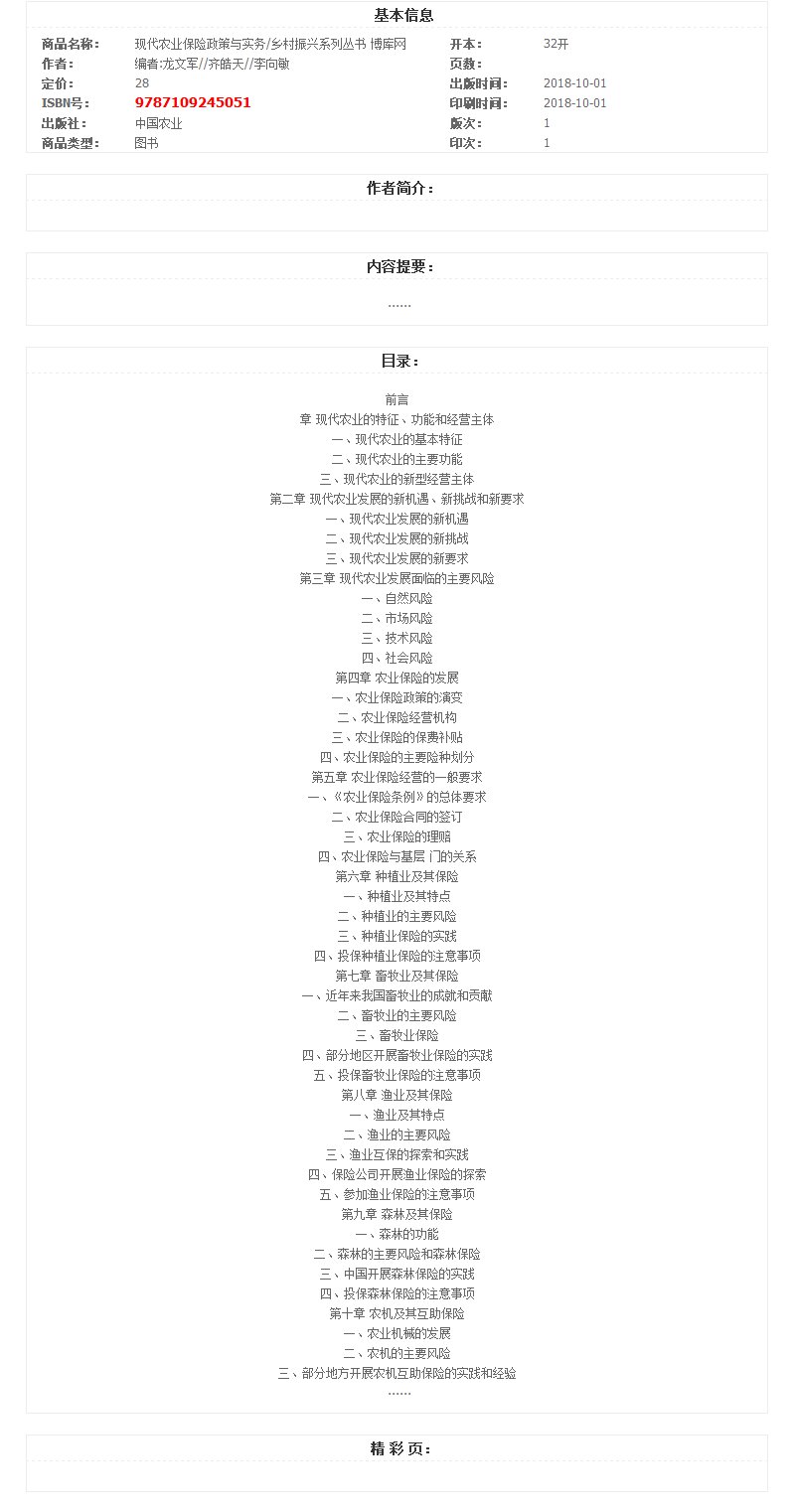 现代农业保险政策与实务